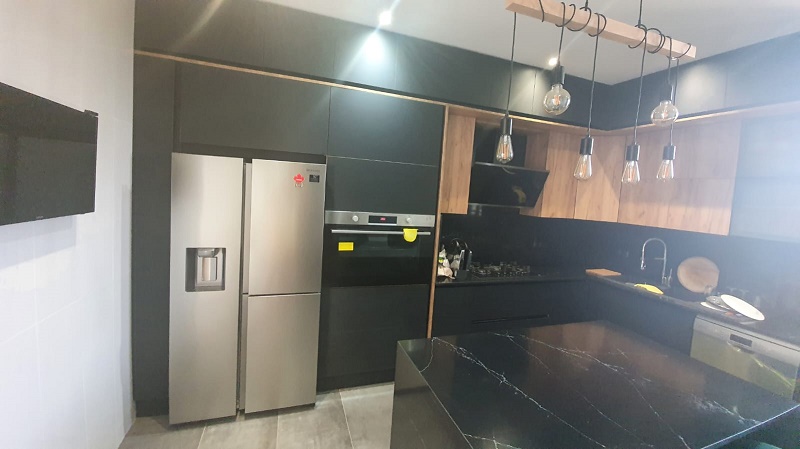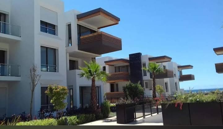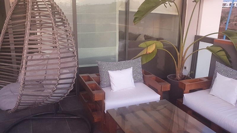 Appartement-à-louer-meublé-Dar Bouazza, résidence de très haut standing, parmi les plus recherchée sur Dar Bouazza, sécurisée, avec espace vert, piscine et salle de sport, proche de toutes les commodités, cet appartement d’une superficie de 200m², sans vis-à-vis se trouve au deuxième étage et dernier avec vue dégagée sur l‘océan, l’appartement comprend un double salon avec cheminée à l’éthanol donnant sur une belle terrasse, salle d’eau invités, cuisine équipée, une suite parentale dont salle de bain et dressing, deux chambres avec placards, une autre salle de bain, grands balcons, place au parking, l’appartement est doté d’une climatisation centralisée