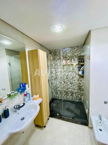 appartement a vendre almaz, appartement haut standing au Rez-de-jardin dans une résidence fermée et sécurisée, dans le quartier Nassim 2(ALMAZ), Proximité de la rocade sud-ouest, avec accès à toutes les autoroutes du Maroc, l’appartement est d’une superficie de 93m² dont 12m² de jardin privatif titré,, orienté sud avec deux façades, distribué comme suit : Un séjour en L avec coin TV, Un grand salon en U, Une suite parentale en parquet avec salle de bain équipée en robinetterie « GROHE » et cabine douche à l’ italienne, Une chambre enfant en parquet, Une salle de bain invités équipée aussi d’une douche italienne, Une cuisine entièrement refaite et agrandie (Plan de travail supplémentaire et placards en bois laqué changés entièrement, (four, hotte, plaque, chauffe-eau, etc…), coin buanderie, Un jardin privatif très bien aménagé avec stores électriques, moucharabieh, espaces verts et gazon artificiels et lumières d’ambiances au sol. Un espace à l’extérieur très agréable à vivre en toute intimité tout en profitant du calme de cette résidence