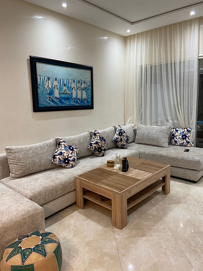 Cet Appartement-à-vendre-meublé-sur-Sidi-Rahalest idéal pour ceux qui recherchent une résidence secondaire ou un investissement locatif. Sidi Rahal est réputée pour ses magnifiques plages, ses restaurants de fruits de mer et son atmosphère étendue. De plus, la ville est facilement accessible depuis Casablanca, à seulement 40 minutes en voiture.