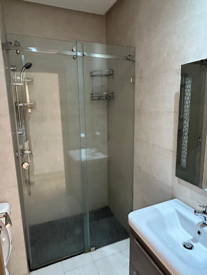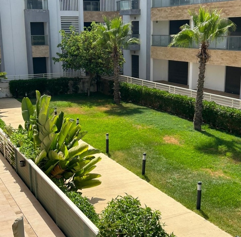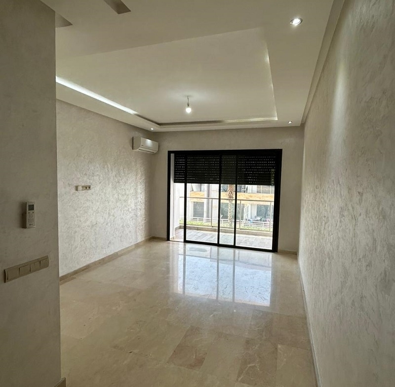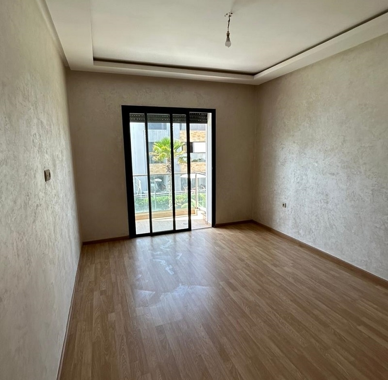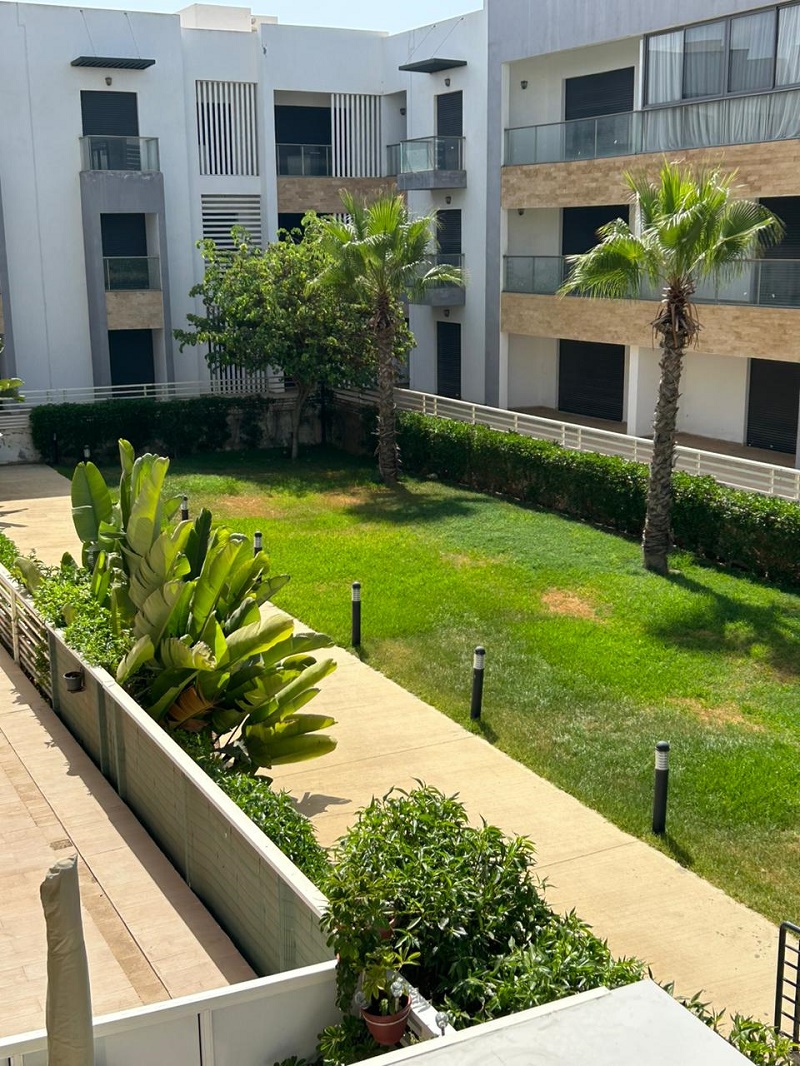 appartement en location avec piscine à Dar Bouazza, sis dans une résidence sécurisée, proche de toutes les commodités, avec espace vert et piscine, se trouvant au premier étage, l’appartement comprend un double salon avec espace salle à manger donnant sur une belle terrasse, une cuisine équipée, une chambre parentale dont placards, salle de bain avec douche à l’italienne et balcon, une autre chambre à coucher pour enfants, salle de bain avec cabine douche , et place au parking,
