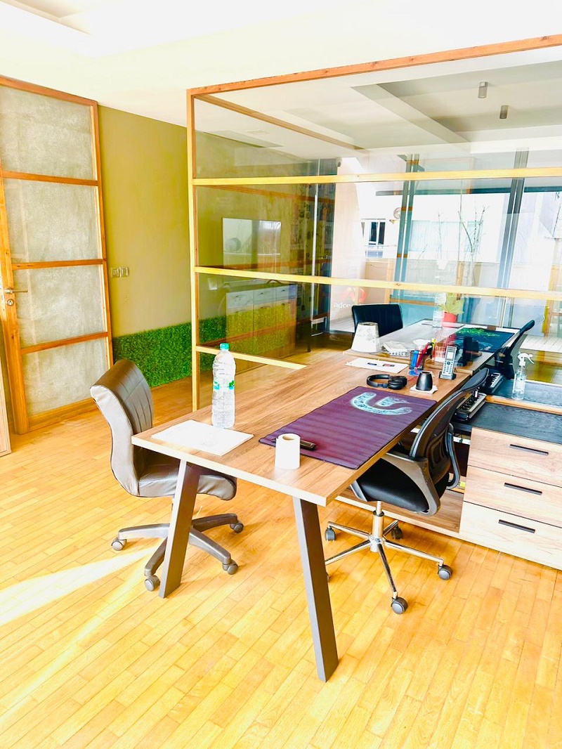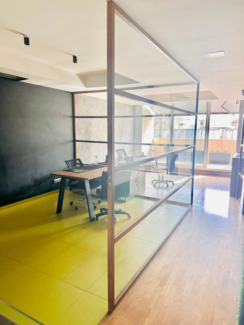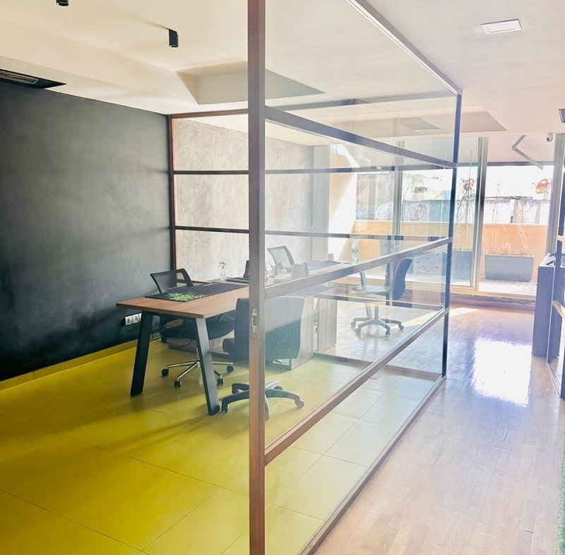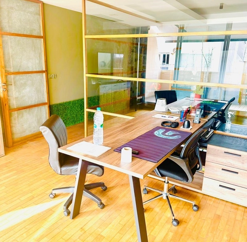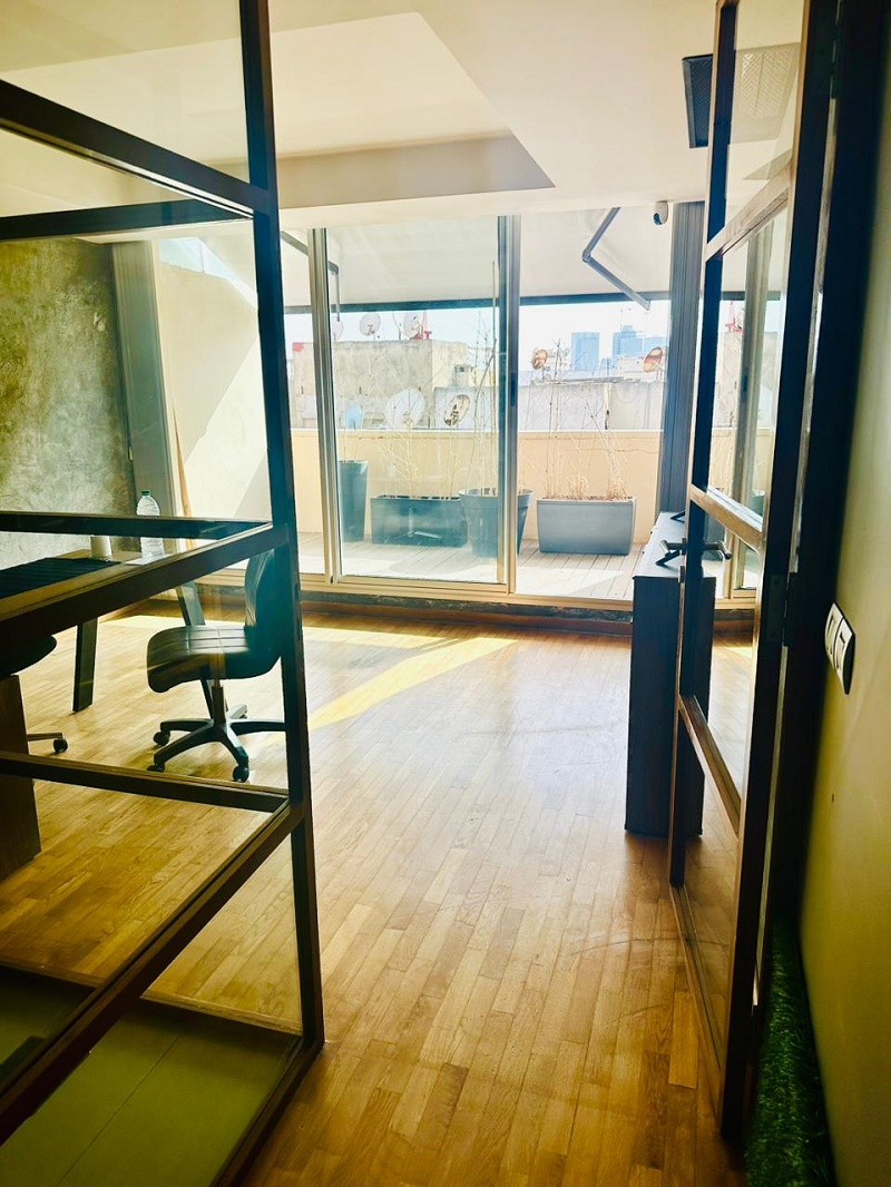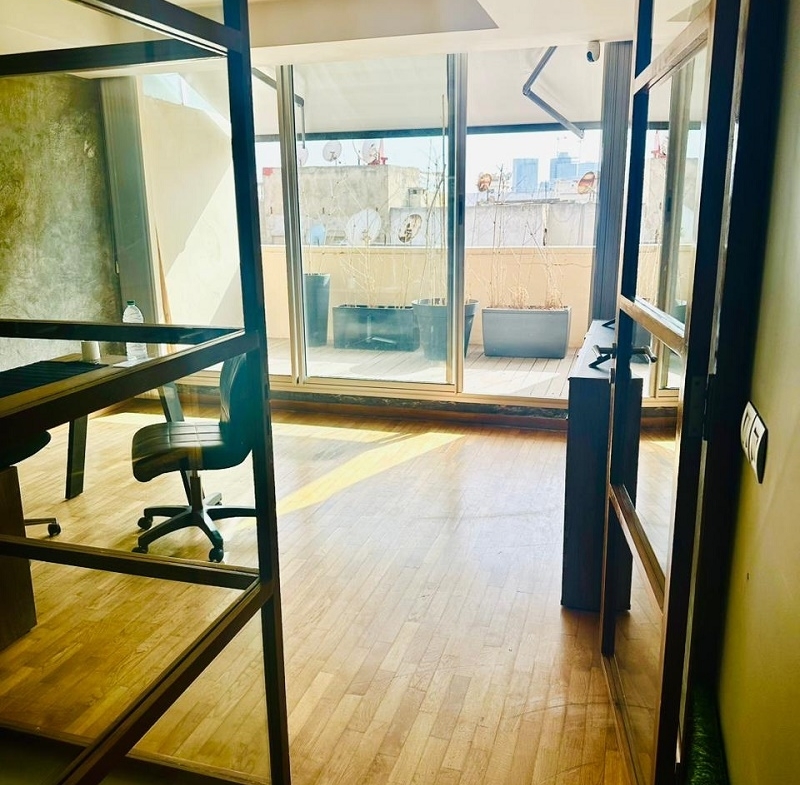Bureau-en-location-dans-un-emplacement stratégique-Casablanca situé sur boulevard Ghandi dans une résidence sécurisé destinée uniquement aux bureaux, d’une superficie de 58m², avec petite terrasse se trouvant au cinquième et dernier étage avec une place au parking, à la proximité des transports et commodités comprenant un espace d’accueil trois pièces avec séparation en verre donnant sur une terrasse, et un WC