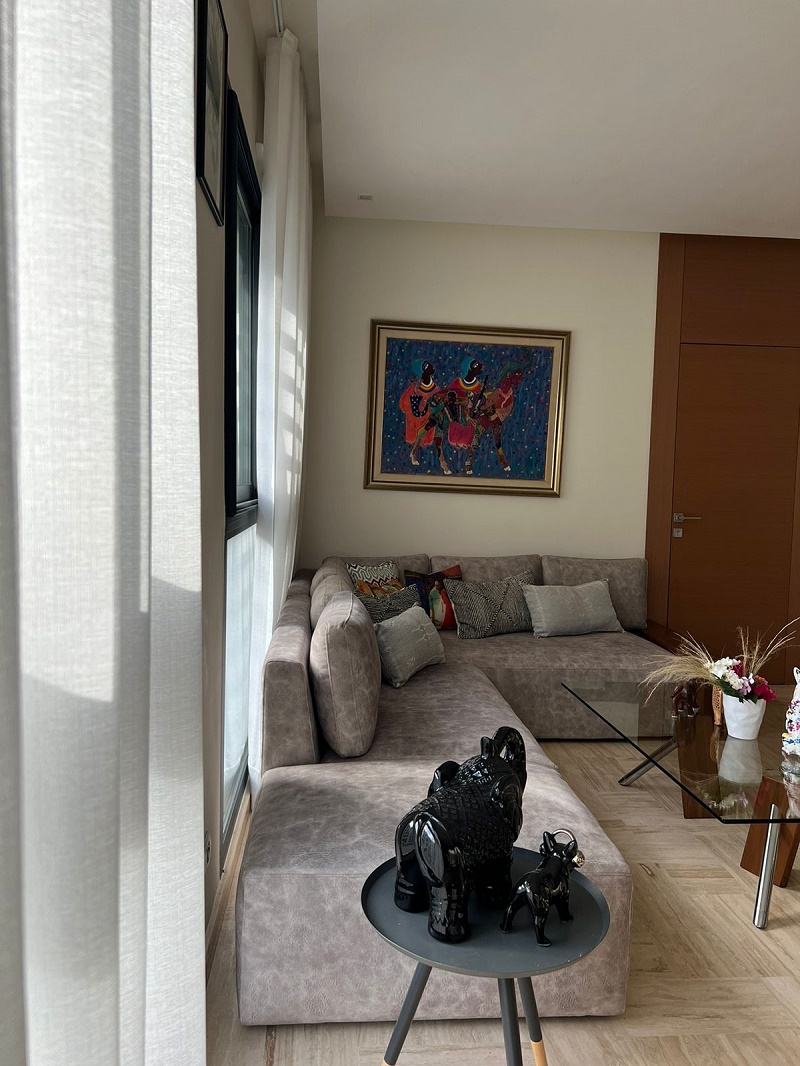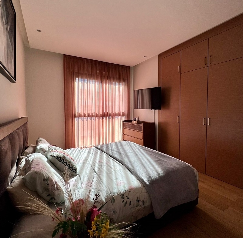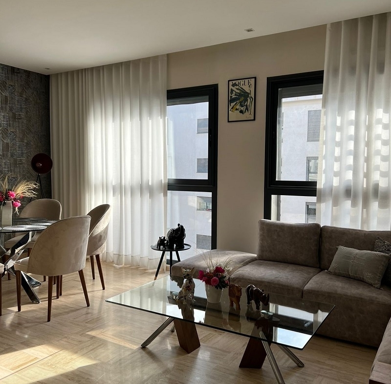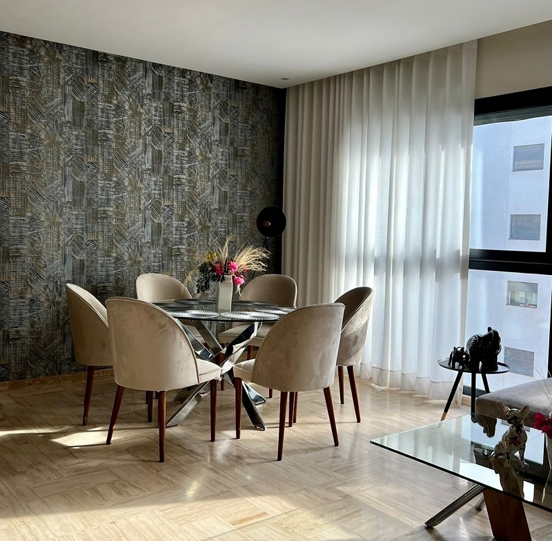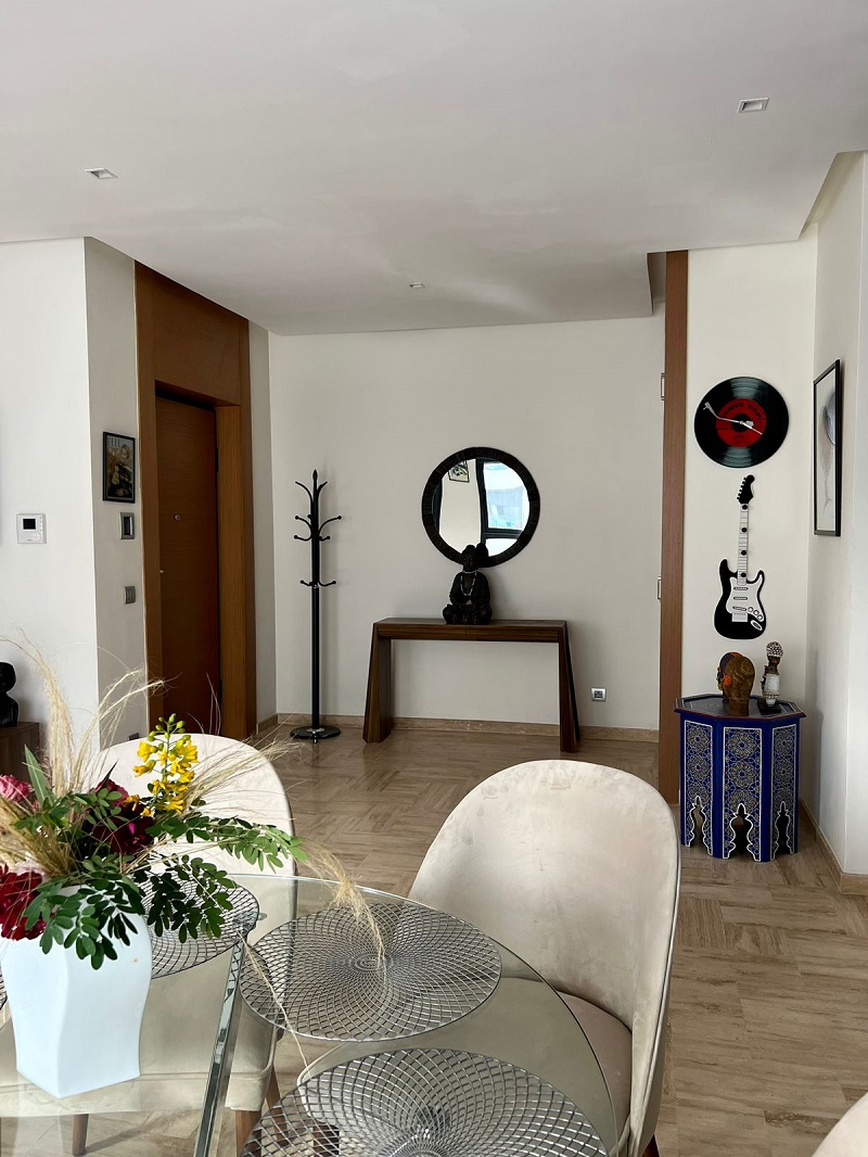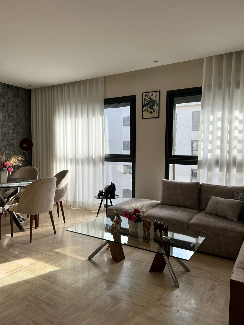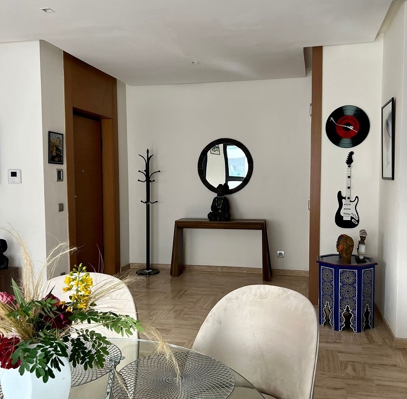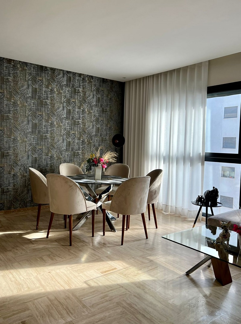 Casa Finance City-Location-Appartement-Meublé-2CH, Propriété entièrement meublée, d’une superficie de 97m², se trouvant au sixième étage, de construction récente, comprenant un Confortable salon européen. avec espace salle à manger, salle d’eau invités, cuisine entièrement équipée, suite parentale dont dressing et salle de bain avec douche à l’italienne, une autre chambre à coucher avec placards, salle de bain avec cabine douche, et une place au parking