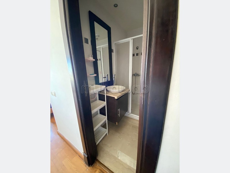 Dar Bouazza-Location-2CH-Meublé, d’une superficie de 97m², se trouvant au premier étage comprenant un grand salon avec coin salle à manger donnant sur une terrasse, une cuisine entièrement équipée avec espace buanderie, une chambre parentale dont dressing et salle de bain avec cabine douche, une deuxième chambre avec placards , une salle de bain avec douche, .