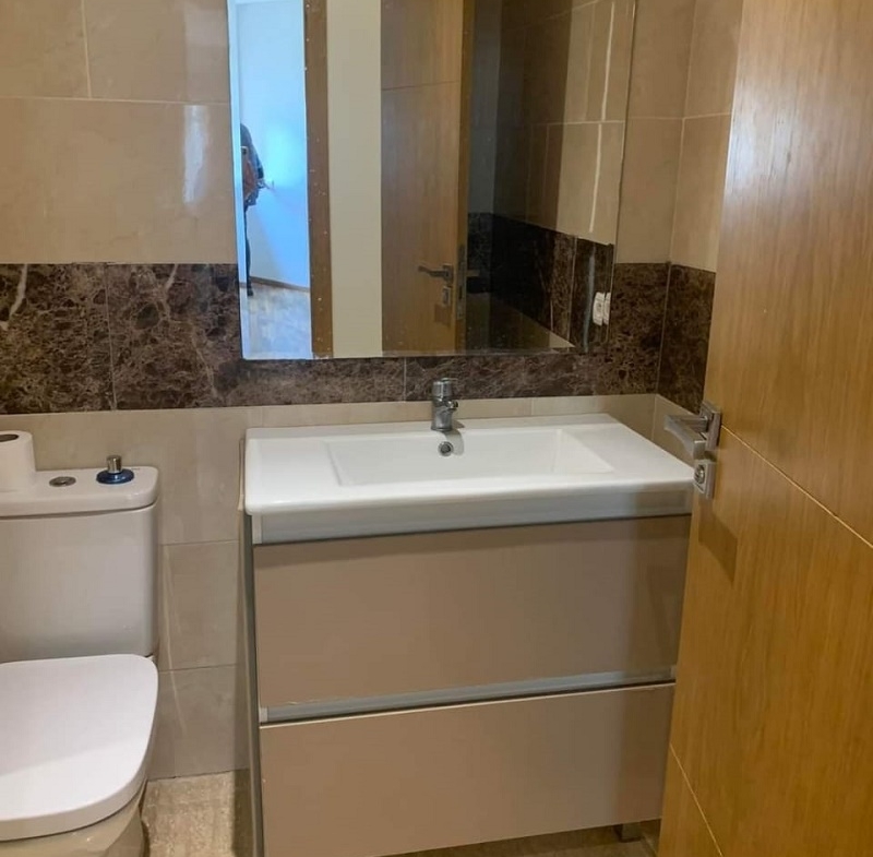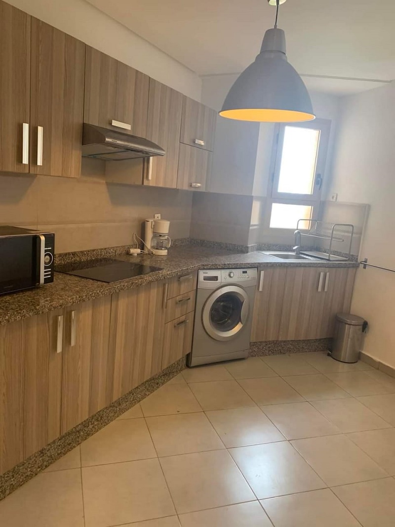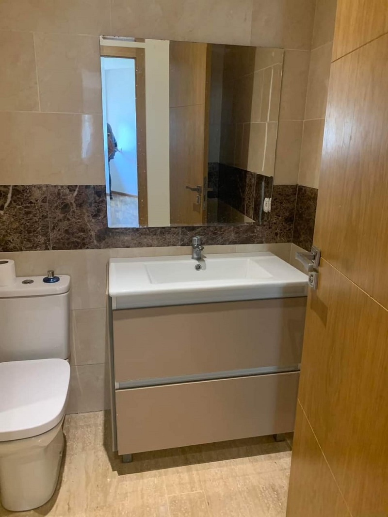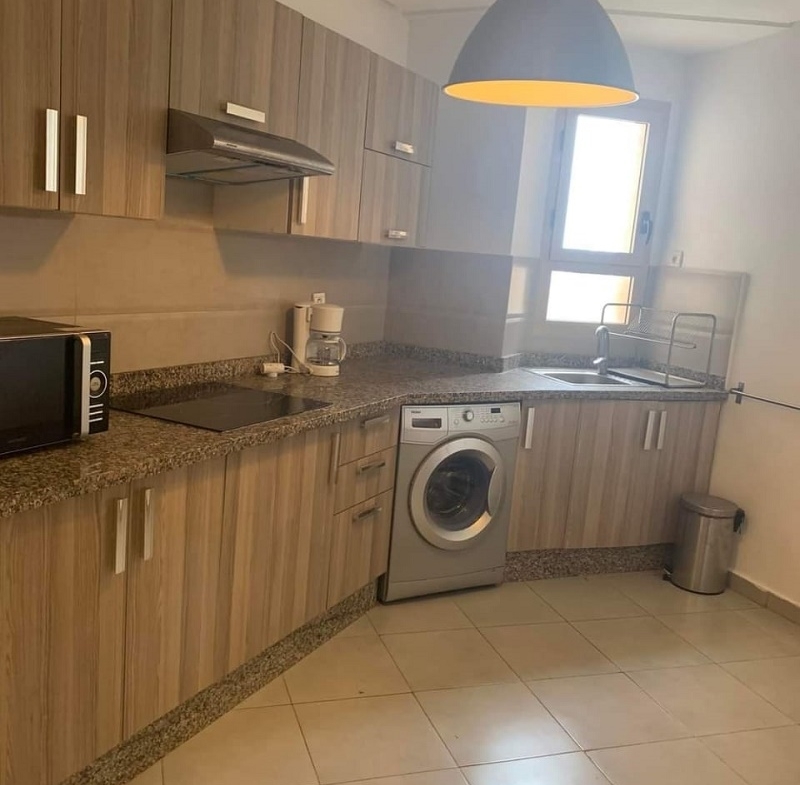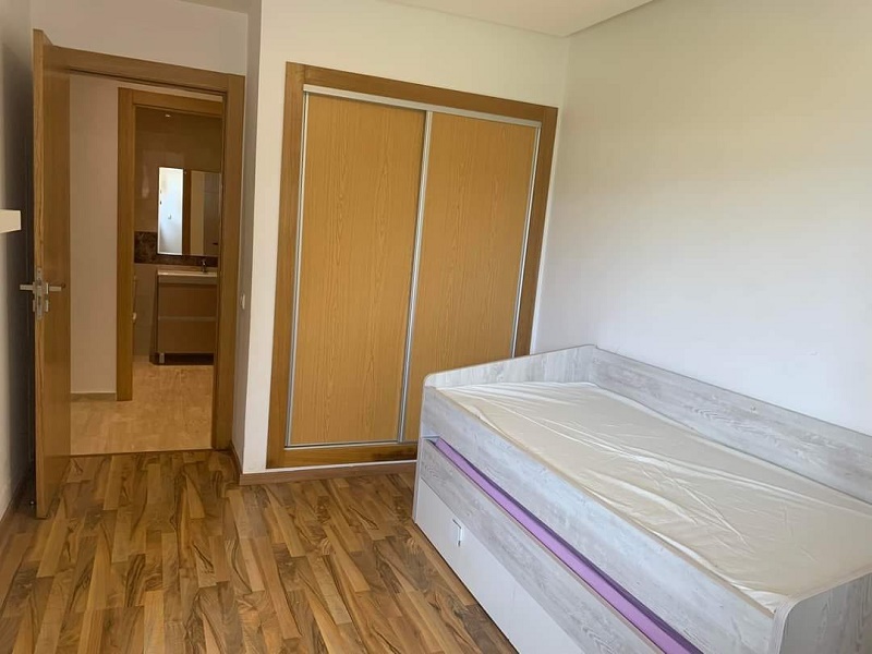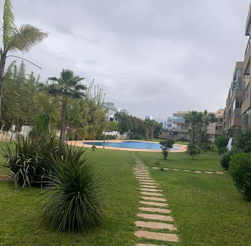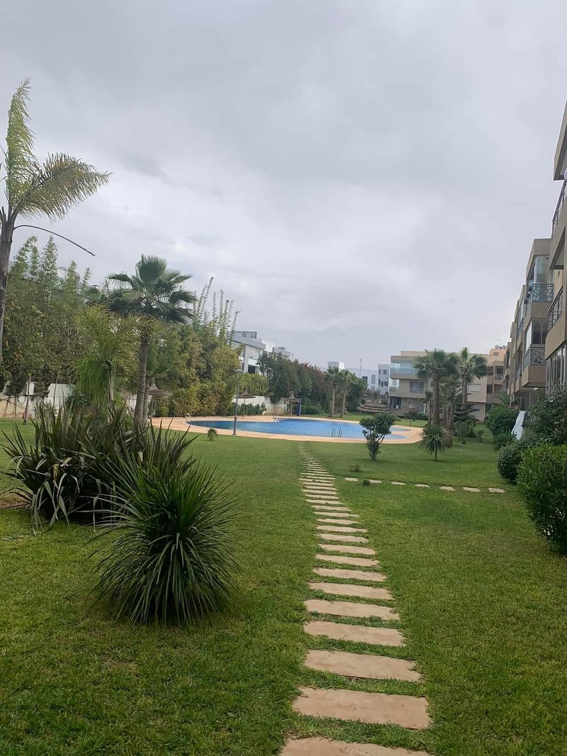 Dar Bouazza-Location-Appartement-Vide-3CH, d’une superficie de 124m², dans une résidence sécurisée, proche de toutes les commodités, avec espace vert et piscine, l’appartement comprend un beau Salon donnant sur une belle terrasse avec vue sur la piscine, salle d’eau invités, cuisine équipée, chambre parentale avec placards et salle de bain avec cabine douche, deux chambres à coucher pour enfants avec placards, salle de bain commune avec douche, et une place au parking