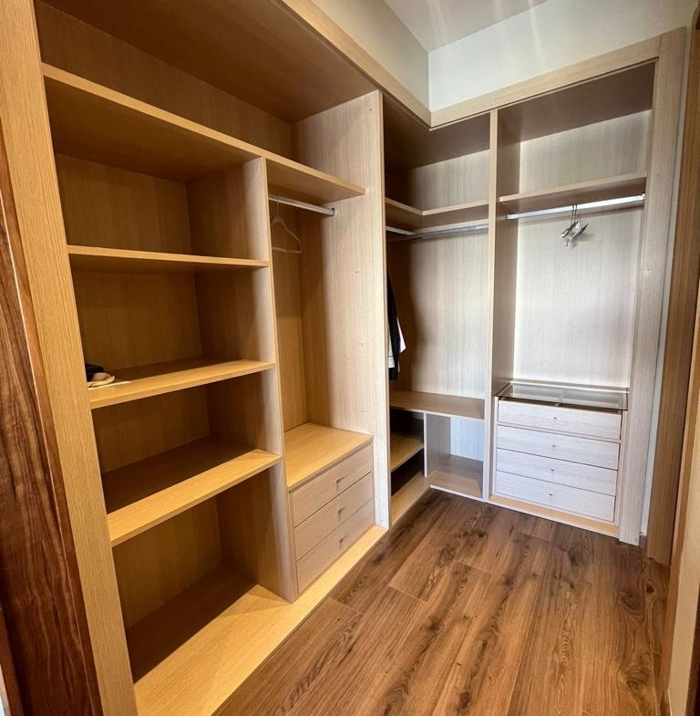 à l’étage comprend une suite parentale dont dressing et salle de bain avec baignoire, une suite junior avec placards et salle de bain avec cabine douche, deux chambres à coucher pour enfants avec placards, une autre salle de bain avec douche à l’italienne, et