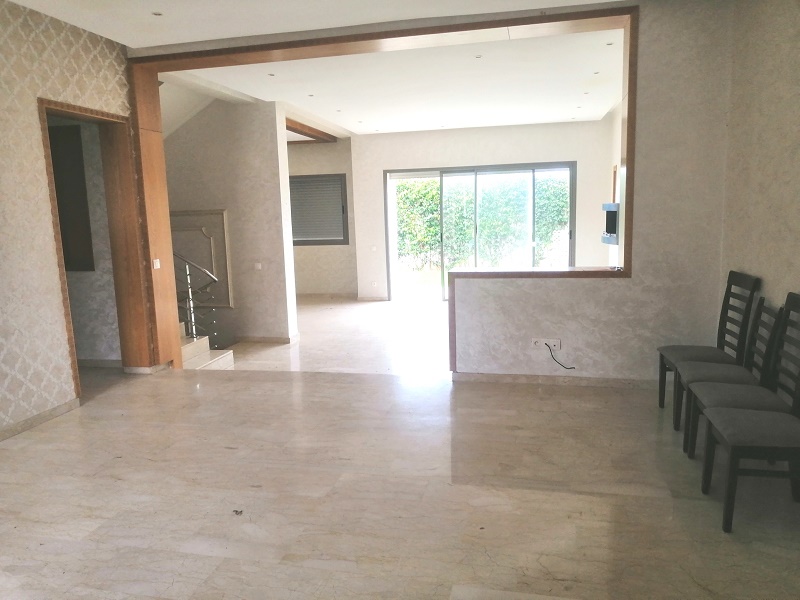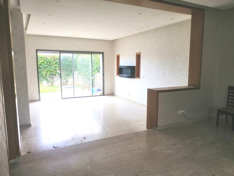 Dar Bouazza-Location-Villa-Piscine-4CH, location d’une villa vide proche des commerces, dans une résidence gardée, d’une superficie de terrain de 220 m², superficie construite 300 m² sur trois niveaux répartit comme suit :