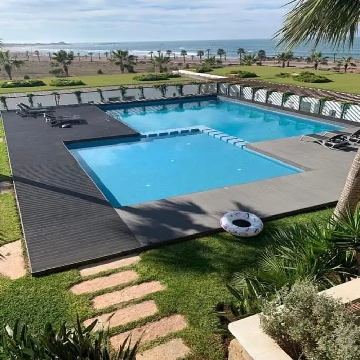 Dar Bouazza-Vente-Bel-Appartement-Front Mer, d’une superficie de 110m² front mer, exposition sud-est, situé dans une résidence de prestige disposant d’équipements de haut de gamme tels que des espaces verts, des jardins paysagers, quatre piscines, à la proximité des plages privées sur Dar Bouazza, un accès direct à la plage, un parking sécurisé et un service de sécurité 24h/24 et 7j/7. avec espaces verts quatre piscines, Idéalement situé à proximité des restaurants, des plages privées de Dar Bouazza, des commerces et des activités nautiques,