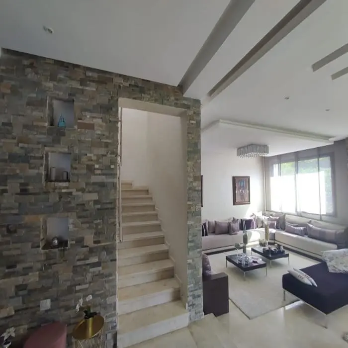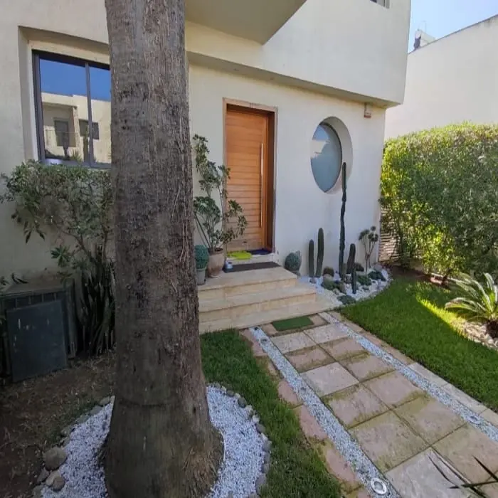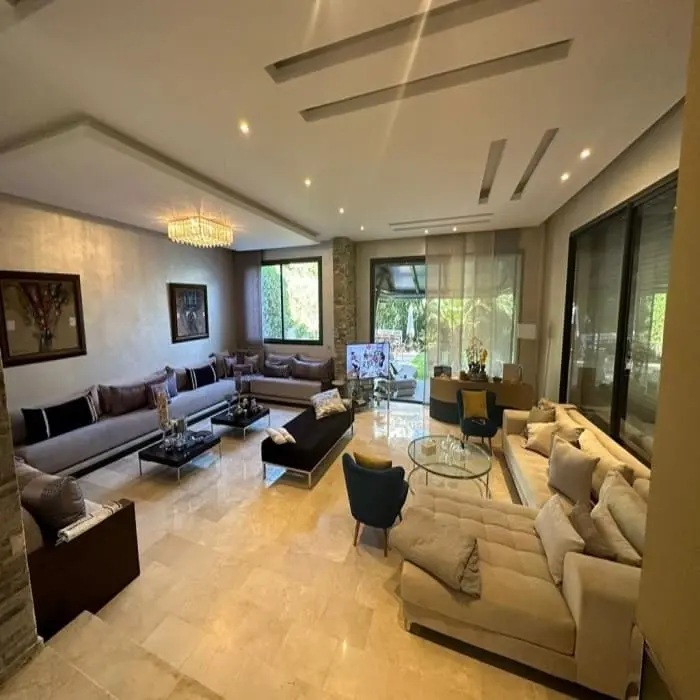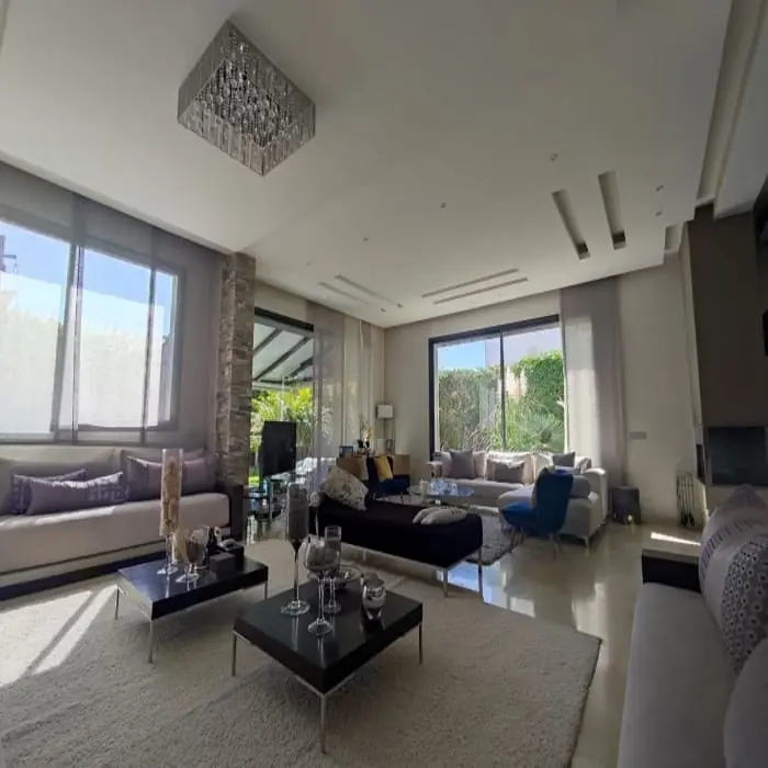 La villa dotée d’un design élégant et de finitions haut de gamme, et offre un cadre de vie exceptionnel pour les amateurs de luxe et de confort. elle se compose de vastes espaces de vie lumineux, comprenant au rez de chaussé un jardin d’entrée, triple salon avec Les grandes baies vitrées offrant une vue imprenable sur une magnifique véranda avec accès direct au jardin et la piscine privée, idéale pour profiter des journées ensoleillées., salle d’eau invités, un grand espace salle à manger élégant, une cuisine entièrement équipée., espace buanderie, chambre pour le personnel ,