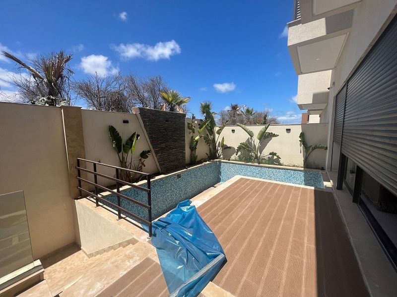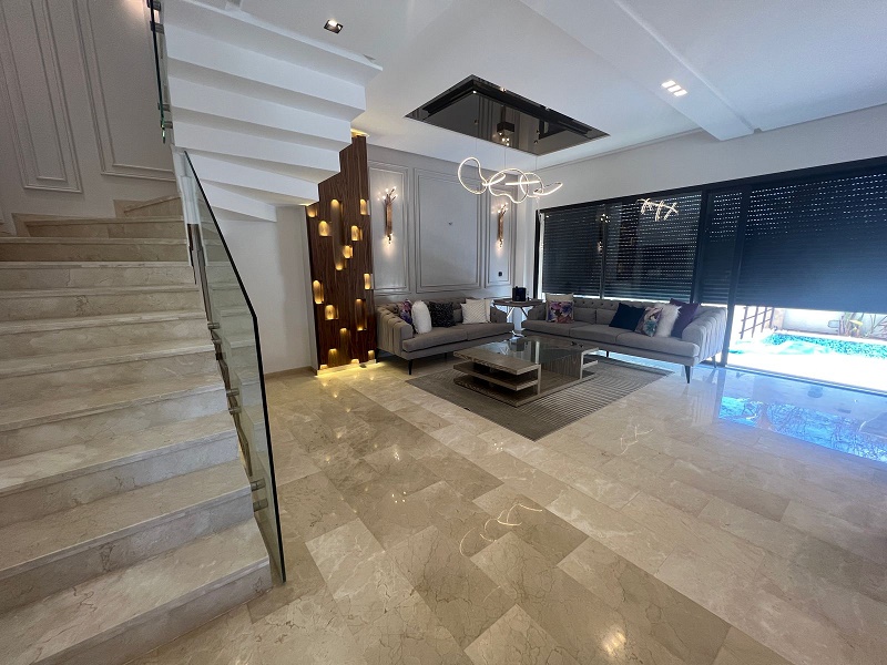 Dar Bouazza-Vente-Belle-Villa-Front Mer, d’une superficie de terrain de 200m² et environ 300m habitable dans une résidence sécurisée front mer, proche des commodités