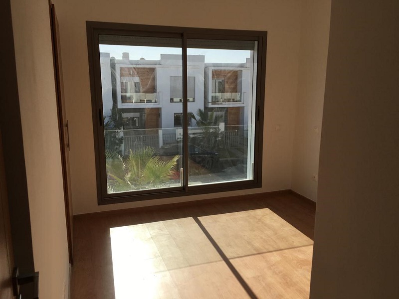 Dar Bouazza-Vente-Villa-Avec-Piscine, d’une superficie de terrain de 175m², construite en deux étages d’une superficie de 90m² par étage, sise dans une résidence sécurisée, comprenant à l’entrée un petit jardin, un double salon avec coin cheminée avec baies vitrées donnant sur la piscine, espace salle à manger, salle d’eau invités, cuisine équipée, l’étage comprend une suite parentale dont dressing, balcon, et salle de bain, deux autres chambres pour enfants avec placards et parquet au sol, une autre salle de bain commune avec cabine douche