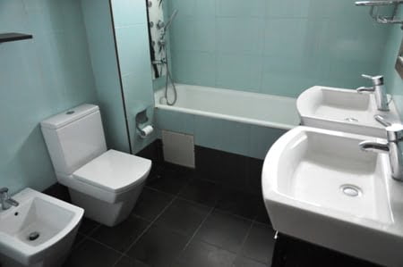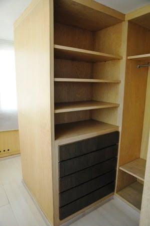 A l’étage supérieur : Appartement pour enfants de deux chambres avec rangements et balcon, et une salle de bain commune avec cabine douche