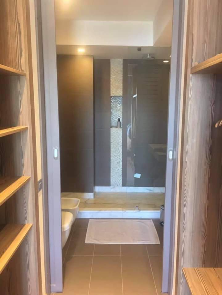 Immobilier à Casablanca-Location-Appartement-de-luxe-meublé-sur-Ain-Diab est doté de la climatisation et de deux télévisions à écran plat. d’un balcon avec exposition plein sud ensoleillée toute l’année même en hiver, il dispose d’un salon avec balcon aménagée, coin salle à manger, salle d’eau invités, La kitchenette est équipée d’un micro-ondes, d’un réfrigérateur et de plaques de cuisson avec tous les ustensiles de cuisines, une suite parentale dont dressing et salle de bain avec douche à l’italienne, peignoirs et le linge de lit est fourni.