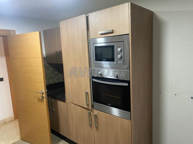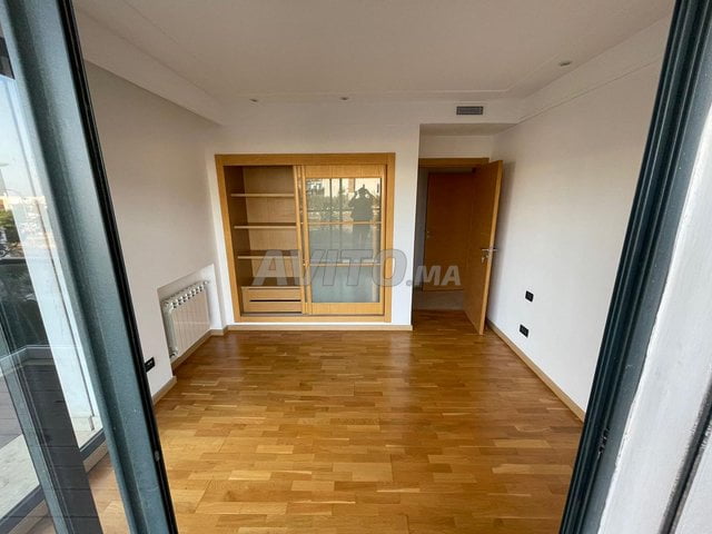 Immobilier-Bouskoura-Location-Appartement-Vide-Sur-Ville Verte, d’une superficie totale de 197m² dont 145m² habitable, se trouvant au 1er étage, sans vis-à-vis, dans une résidence calme et sécurisée, se composant d’un double salon donnant sur une terrasse avec vue sur Golf, salle d’eau invités, cuisine équipée avec espace buanderie et chambre de personnel avec ses sanitaires, deux chambres pour enfants avec rangements et balcons, salle de bain avec cabine douche, suite parentale dont dressing et salle de bain avec baignoire, deux places au parking et box