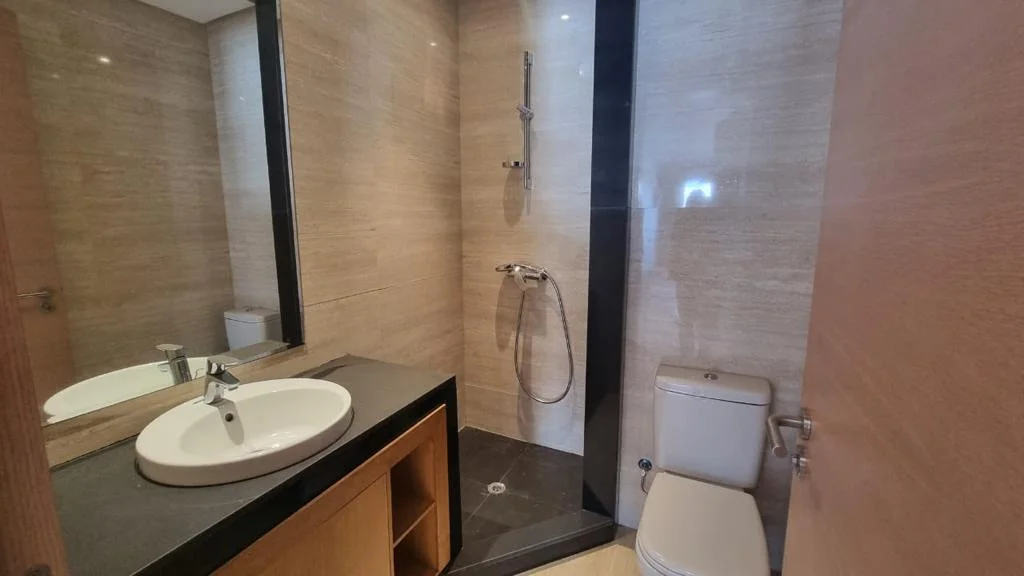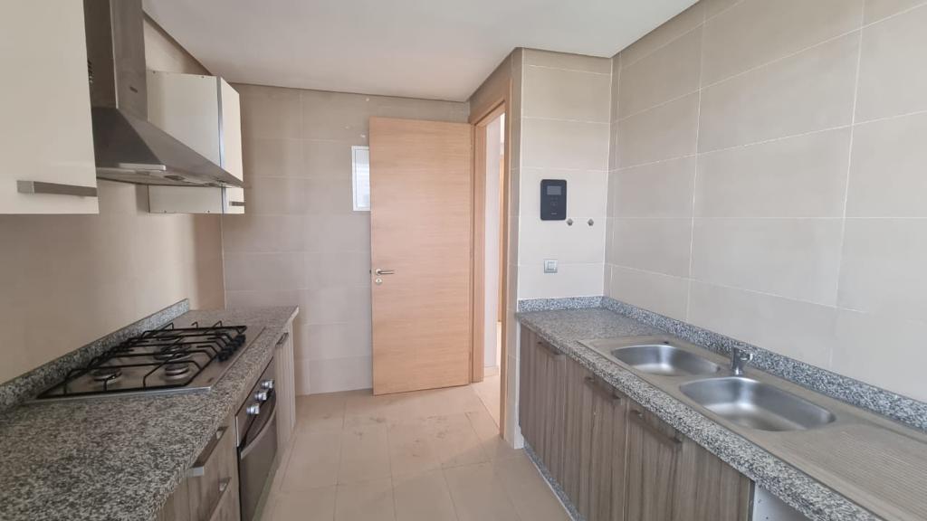 Immobilier-Bouskoura-Location-Appartement-ville-verte est dotée de la climatisation centrale, parquet dans les chambres et le salon, place au parking , appartement disponible le 1er Octobre