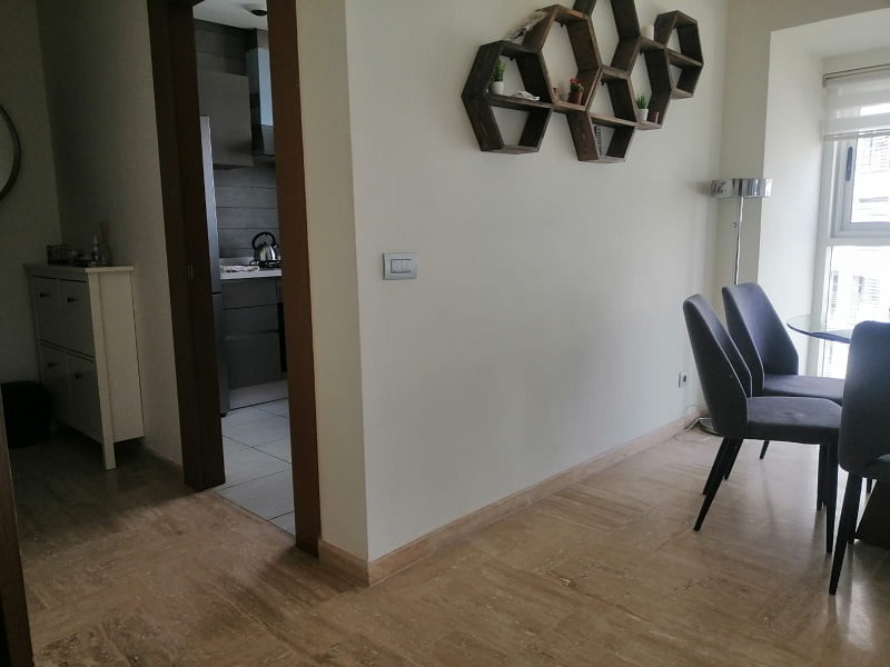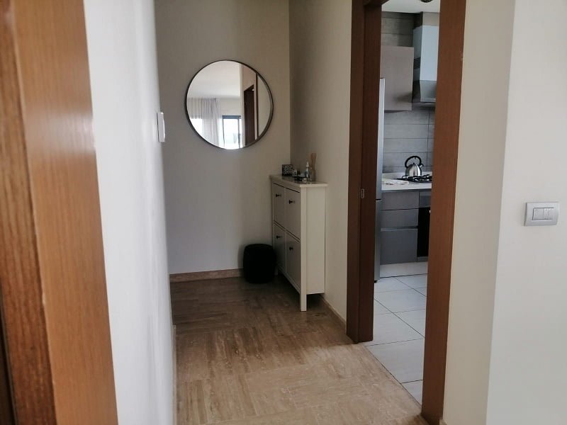 Immobilier-Casablanca-Location-Appartement-Meublé-CFC, d’une superficie de 115m², se trouvant au troisième étage, sis sur quartier Casa Finance City, orienté sud ouest dans résidence sécurisée à la proximité de toutes les commodités et transports comprenant un hall, grand salon européen avec coin salle à manger donnant sur terrasse aménagée (chaises et table) traversant tout l’appartement, une cuisine américaine entièrement équipée, une chambre parentale dont placards et salle de bain avec baignoire, une autre chambre avec placards, salle de bain avec cabine douche, et une place au parking
