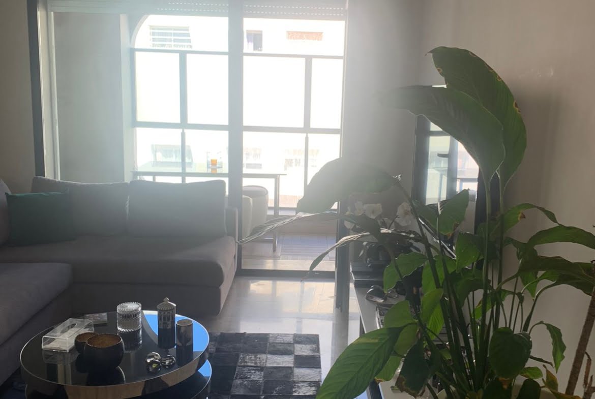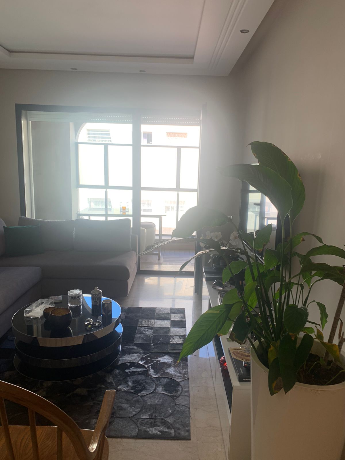 Immobilier-Casablanca-Location-Appartement-Meublé-Sur-Bourgogne, moderne et bien situé de beau côté de bourgogne, proche de toutes commodités, se trouvant au deuxième étage, de construction récente, comprenant un salon européen avec des jolis canapés donnant sur une petite terrasse, , une cuisine entièrement équipée, une chambre parentale avec rangements et salle de bain et balcon, chambre avec placards pour enfants , salle de bain avec cabine douche, place au parking