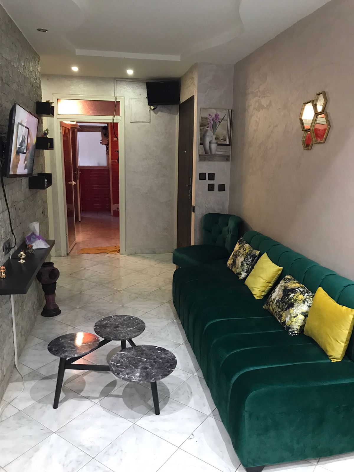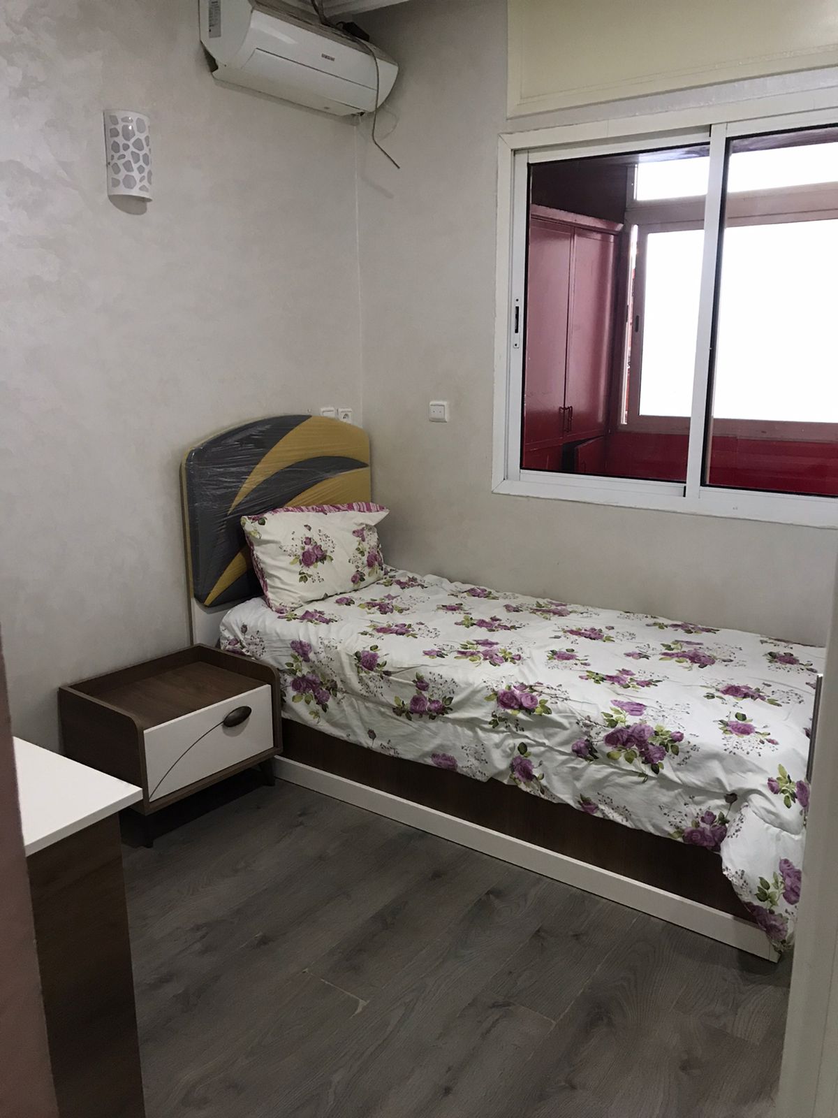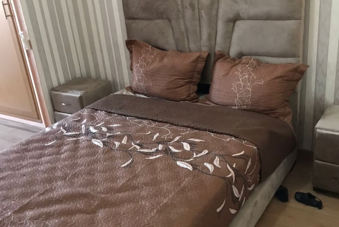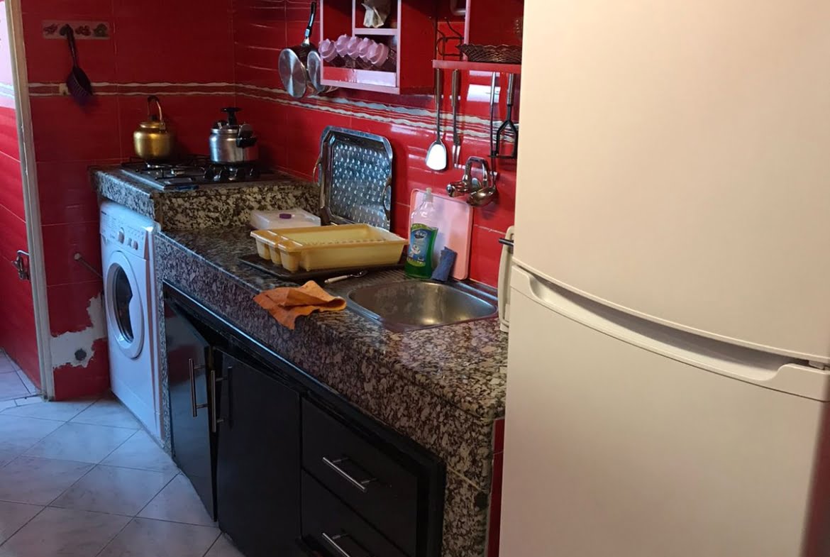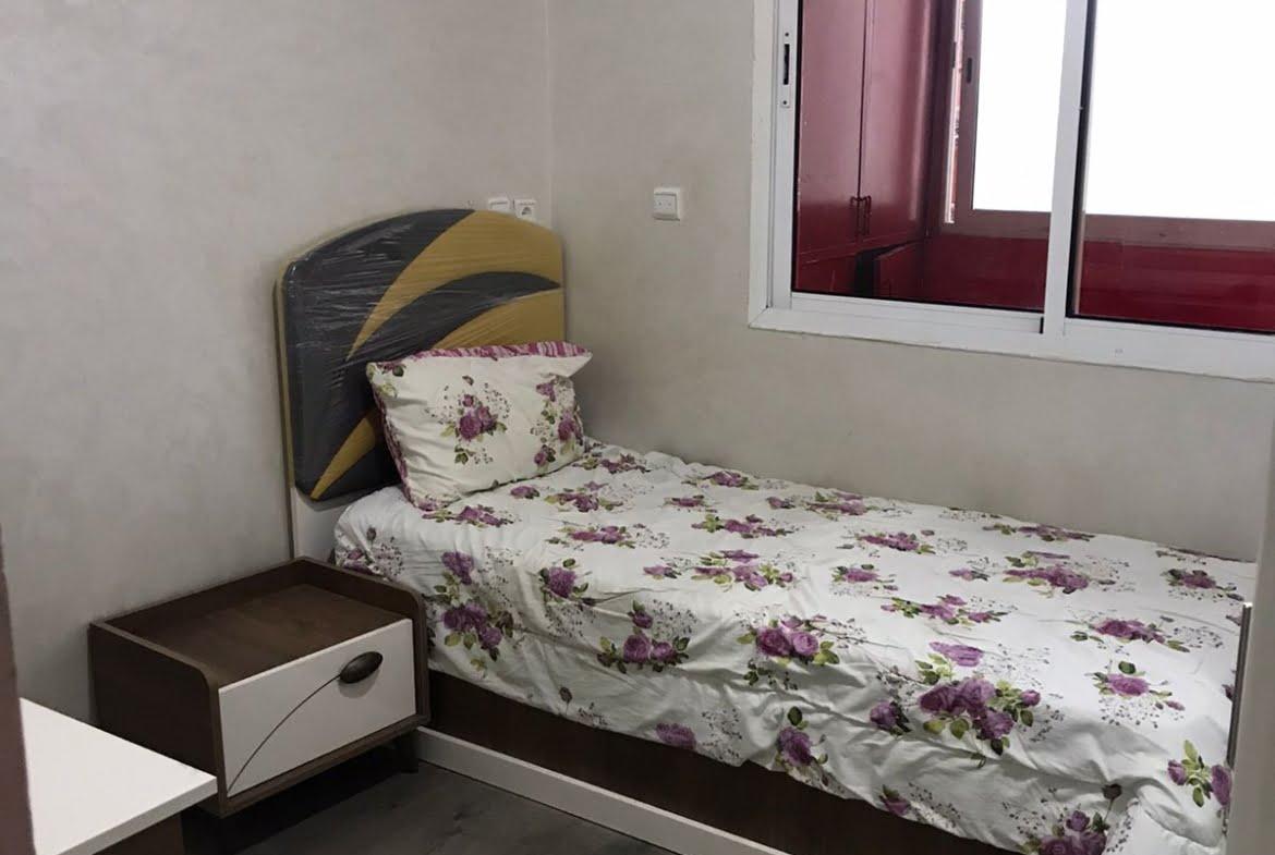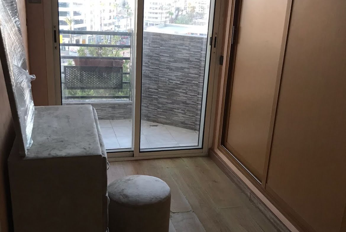 Immobilier-Casablanca-Location-Appartement-Meublé-sur-Moulay-Youssef, Appartement neuf, sans vis à vis d’une superficie de 71m², se trouvant au cinquième étage, comprenant un salon moderne et un coin télévision avec canapé, cuisine entièrement équipée avec balcon, une chambre des parents Climatisée avec grand lit , placards et Balcon, une autre chambre pour enfant avec rangements climatisée, salle De bain avec cabine douche