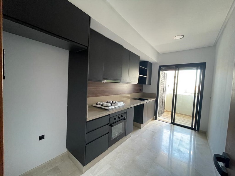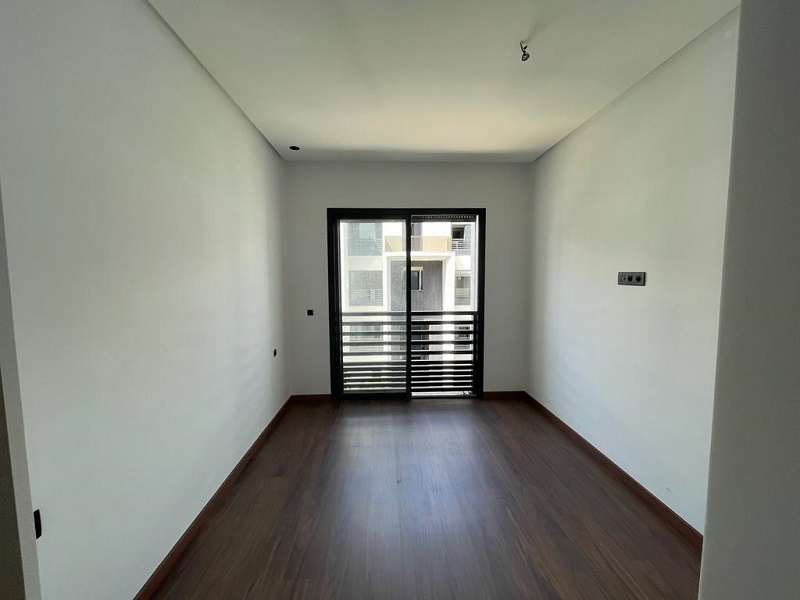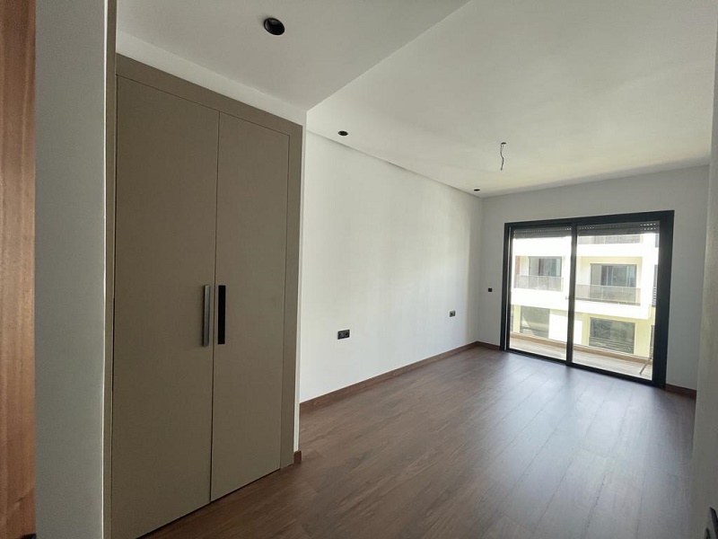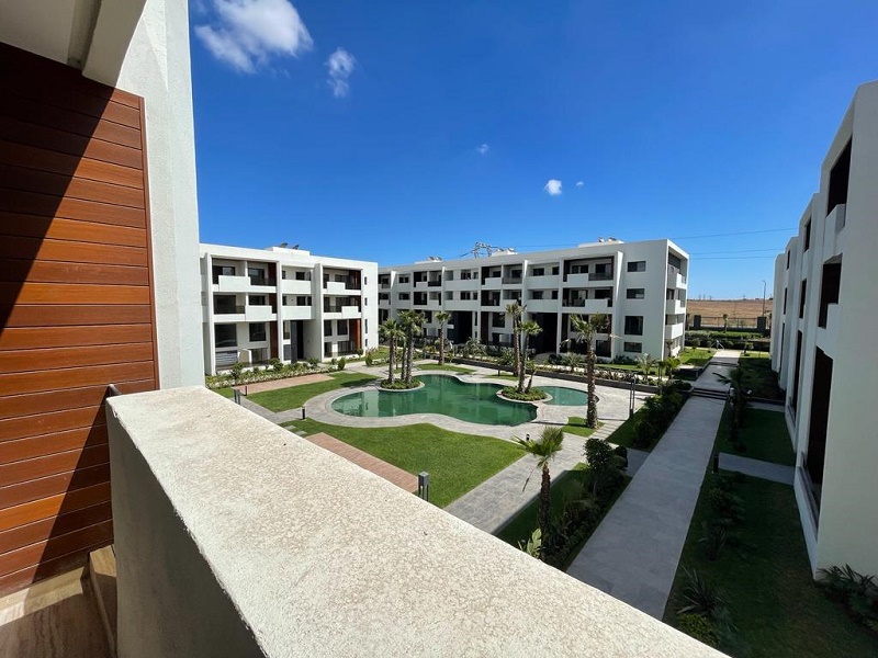 Immobilier-Casablanca-Location-Appartement-Neuf-Bouskoura,est d’une superficie de 140m² avec deux façades, se trouvant dans une résidence neuve sécurisée sur Bouskoura ville verte, résidence de très haut standing avec espace vert et piscine, , l’appartement est doté d’un double salon donnant sur une magnifique terrasse avec vue dégagée, cuisine équipée avec balcon et placards de rangements, une suite parentale dont placards, salle bain à l’Italienne et une terrasse, deux chambres à coucher pour enfants avec placards, salle de bain avec cabine douche,et une place au parking