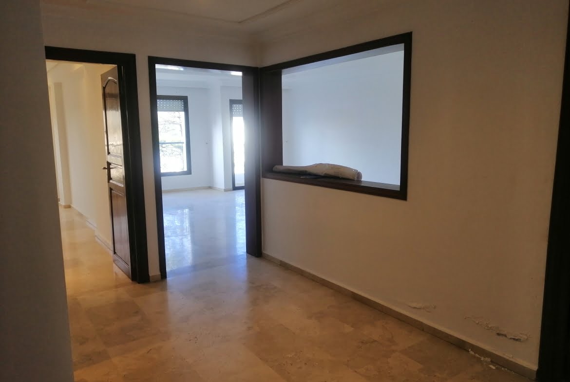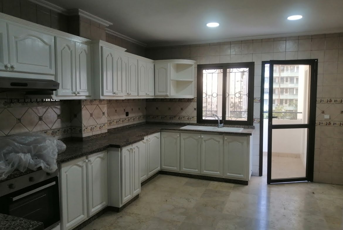 Immobilier-Casablanca-Location-Appartement-Sur-Racine, d’une superficie de 170m², se trouvant au troisième étage, dans une residence de haut standing et bien entretenu, ensoleillé et sans vis-à-vis, proche de Paul Anfa, et de toutes les commodités et écoles, l’appartement est bien agencé comprenant un hall, grand salon donnant sur un balcon, salle d’eau invités, coin salle à manger, grande cuisine avec espace buanderie, espace enfants contenant un petit hall avec rangements, deux chambres avec placards, salle de bain avec baignoire, chambre parentale dont placards et salle de bain avec cabine douche, place au parking