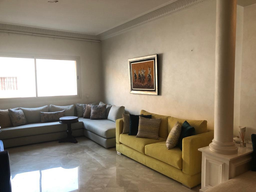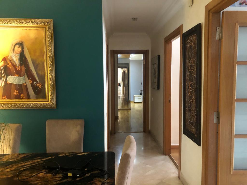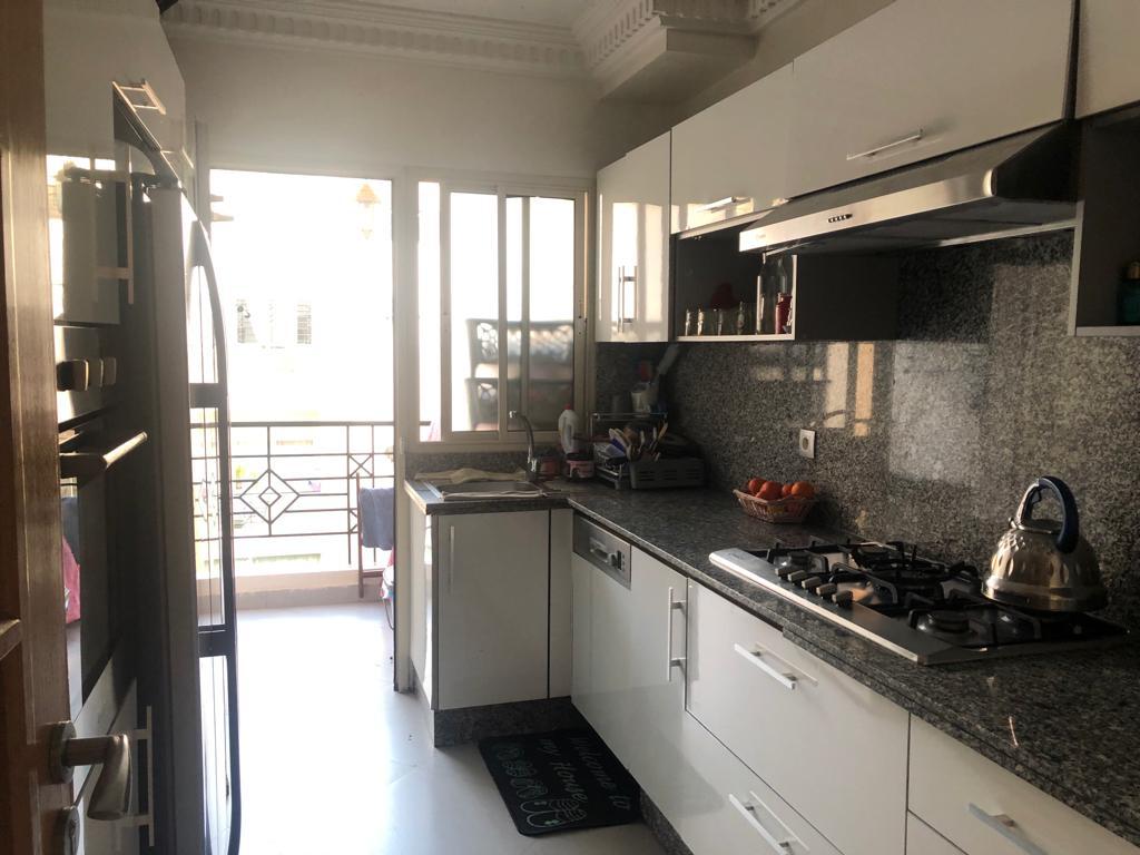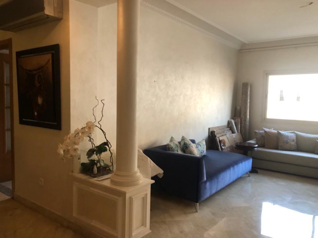 Immobilier-Casablanca-Location-Appartement-Vide-Sur-Californie, d’une superficie de 134m², se trouvant au troisième étage dans une résidence sécurisée, proche de toutes commodités, comprenant un double salon avec espace salle à manger, salle d’eau invités avec cabine douche, cuisine équipée avec balcon qui pourrait servir comme espace buanderie, grande suite parentale de 34m² dont placards, petit salon et salle de bain à l’italienne, une autre chambre à coucher avec placards, place au parking