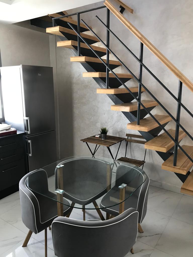 Immobilier-Casablanca-Location-Duplex-Meublé-Maârif, Situé au quatrième et dernier étage d’un immeuble récent , dans une ruelle calme d’une superficie de 80 m², ce duplex comprend un salon avec cuisine américaine attenante, salle d’eau invités, deux chambres et deux salles de bain,