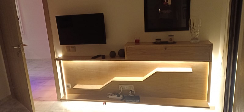 Immobilier-Casablanca-Location-Studio- Meublé-Quartier-Laymoun est Equipé de la climatisation centrale, sonorisation bizone intérieur et extérieur, système d’alarme, éclairage d’ambiance, trois télévisons, chaine hifi,…