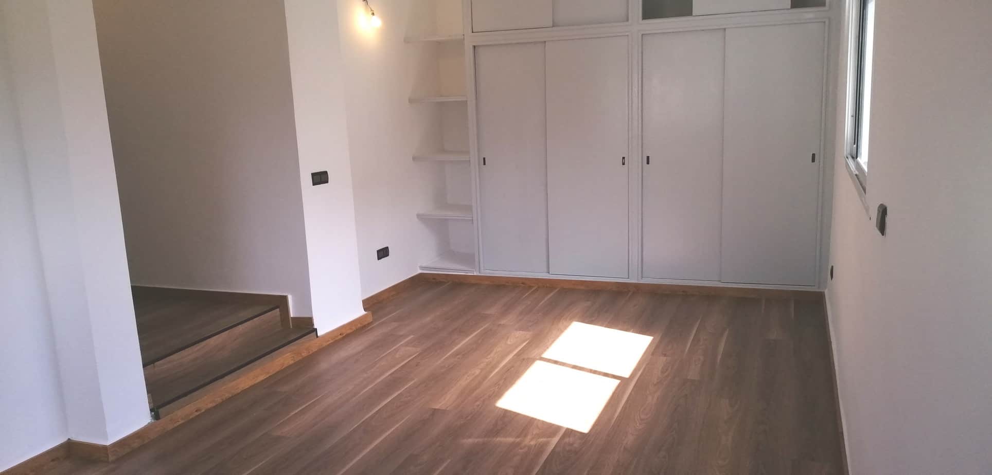 A l’étage on trouve deux grandes chambres avec placards pour enfants, salle de bain avec douche, une petite chambre qui peut servir pour bureau ou autre, une suite parentale dont dressing et salle de bain avec baignoire