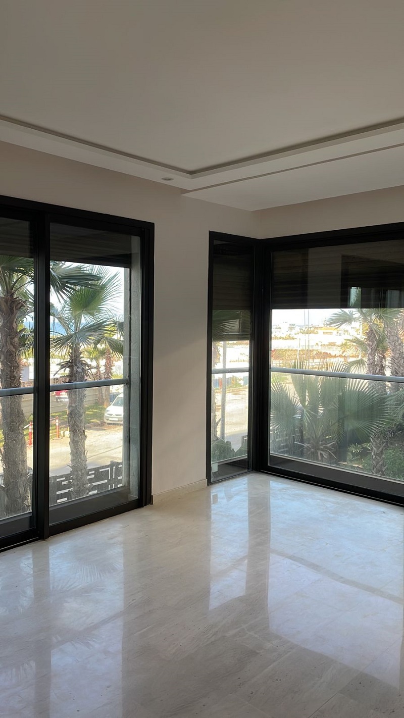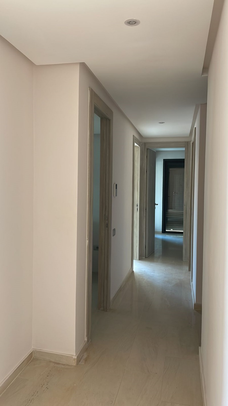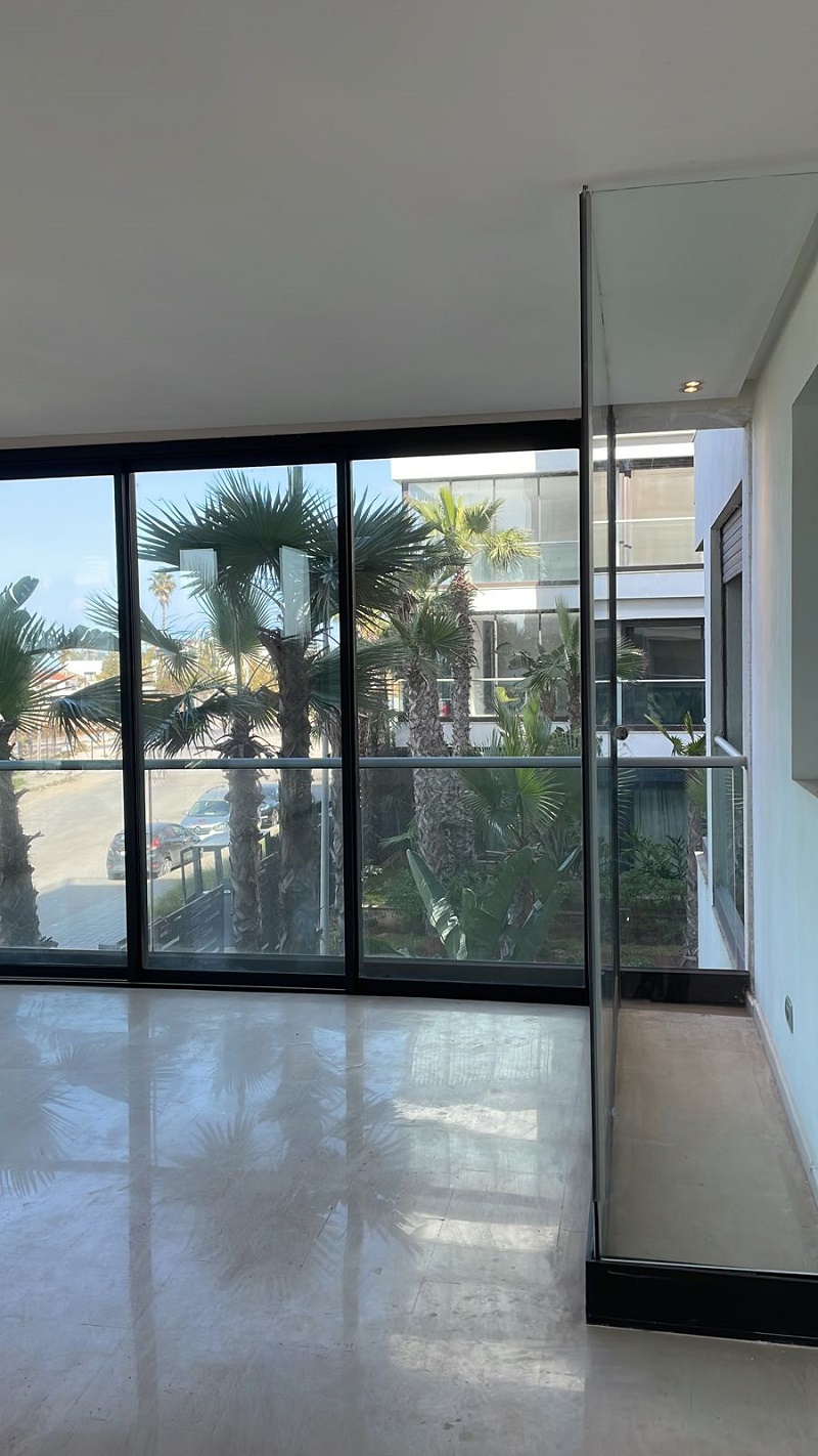 Immobilier-Casablanca-Vente-Appartement-Neuf-Ain Diab, ce magnifique appartement est d’une superficie de 137m², situé dans une résidence sécurisée avec espace vert, se trouvant au premier étage, comprenant un double salon avec vue imprenable sur mer à travers de grandes baies vitrées, salle d’eau invités, cuisine équipée, deux chambres avec rangement, salle de bain avec douche à l’italienne, une suite parentale dont dressing, salle bain à l’italienne et balcon donnant sur le jardin, et une place au parking