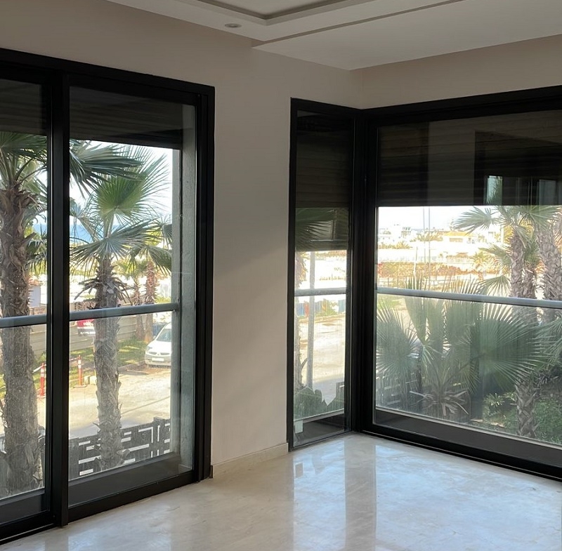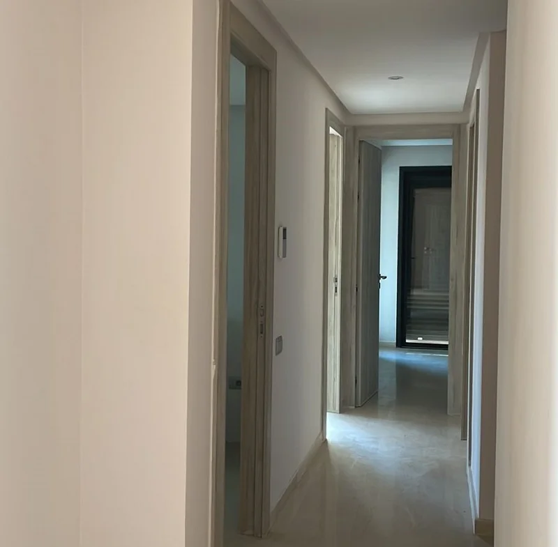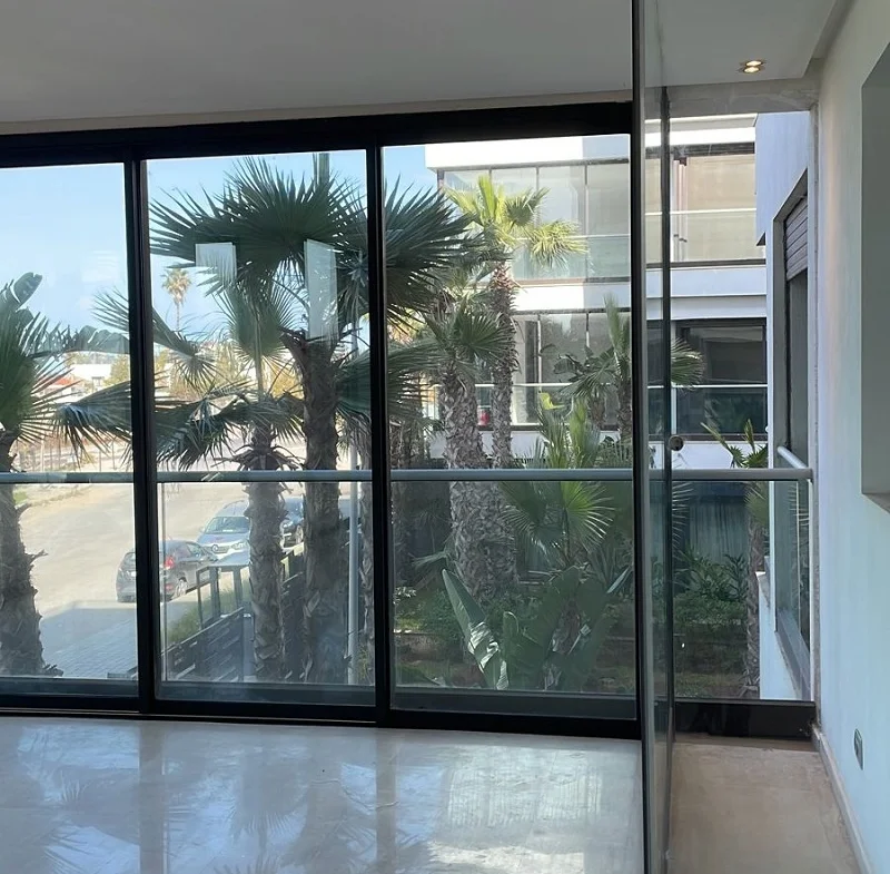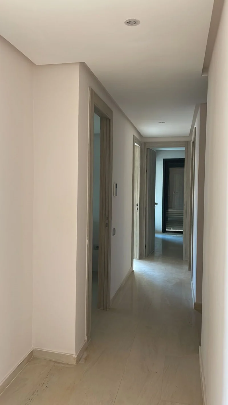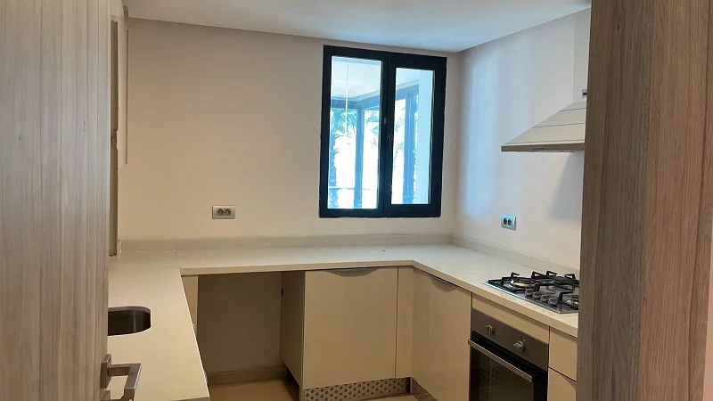 Immobilier-Casablanca-Vente-Appartement-Neuf-Ain Diab, ce magnifique appartement est d’une superficie de 137m², situé dans une résidence sécurisée avec espace vert, se trouvant au premier étage, comprenant un double salon avec vue imprenable sur mer à travers de grandes baies vitrées, salle d’eau invités, cuisine équipée, deux chambres avec rangement, salle de bain avec douche à l’italienne, une suite parentale dont dressing, salle bain à l’italienne et balcon donnant sur le jardin, et une place au parking