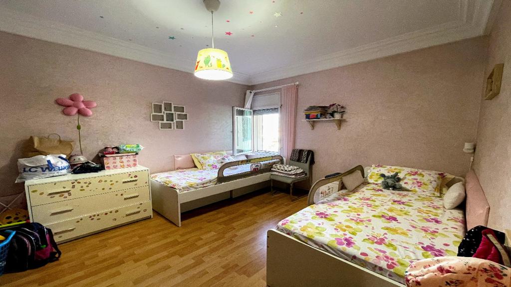Immobilier-Casablanca-Vente-Appartement-Palmier, d’une superficie de 142m², se trouvant au quatrième étage, appartement ensoleillé, dans une résidence très propre et bien entretenu, deux appartements par palier, à la proximité de tous commerces et écoles, comprenant un grand hall, un double salon avec coin cheminée, salle d’eau invités avec cabine douche, une suite parentale dont placards et salle de bain avec baignoire et un grand balcon, deux chambres pour enfants avec placards donnant sur une terrasse(possibilité d’ouvrir pour y avoir accès), grande cuisine avec espace salle à manger et coin buanderie avec possibilité d’avoir accès à une deuxième terrasse, place au parking,