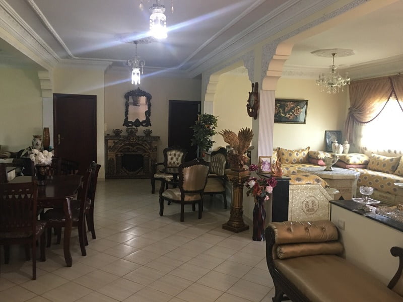 La villa est d’une superficie de 2400m² dont 320m² construit comprenant : un triple salon, toilettes reception, grande cuisine, quatre chambres, trois salle de bain, un garage pour quatre voitures,
