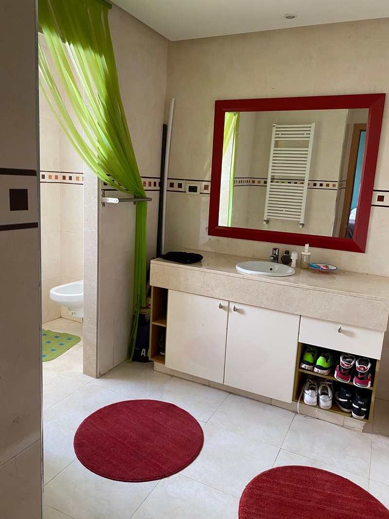 A l’étage de la villa se compose de trois chambres pour enfants avec placards et chacune sa propre salle de bain avec cabine douche et une suite parentale dont dressing et salle de bain avec baignoire, et grande terrasse aménagé
