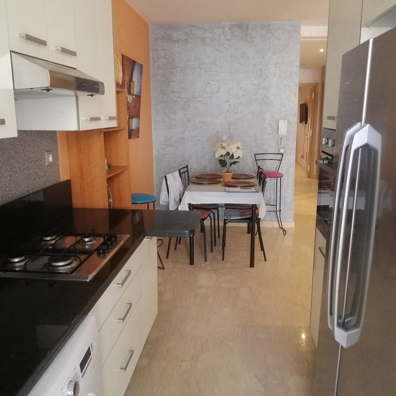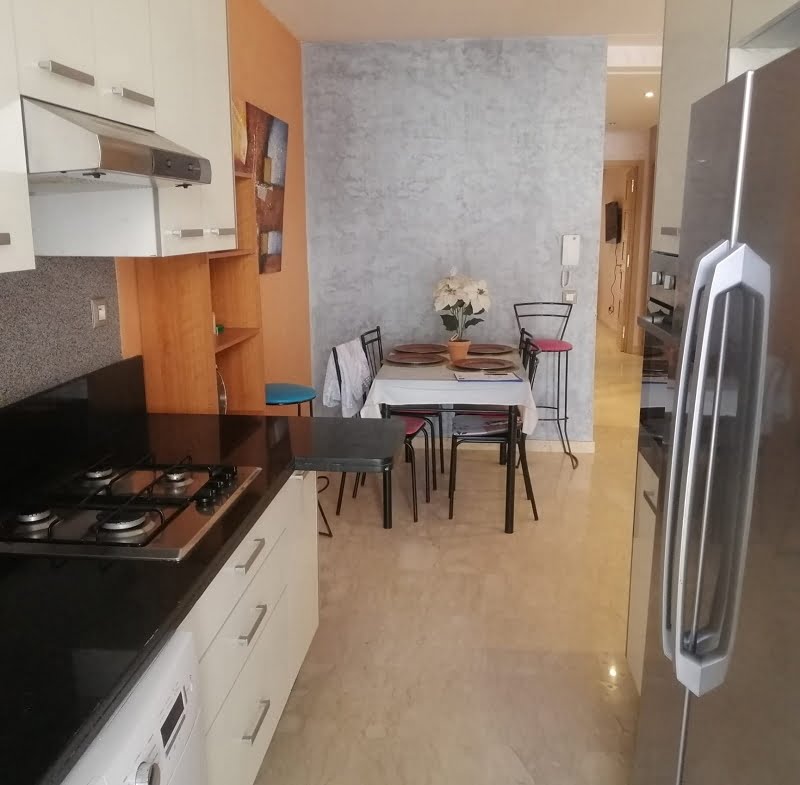 Immobilier-Gauthier-Location-Appartement-Meublé-Terrasse et Moderne, cet appartement est d’une superficie de 90m², se trouvant au premier étage, sur quartier Gauthier, proche de toutes commodités (Supermarché, école française, restaurant…), orienté plein sud comprenant un grand salon européen avec coin salle à manger, salle d’eau invités, cuisine entièrement équipée avec coin buanderie, une chambre séjour avec canapé lit et rangement, chambre à coucher avec placards, les deux dernières ont un accès à une belle terrasse aménagé, salle de bain avec cabine douche, place au parking,