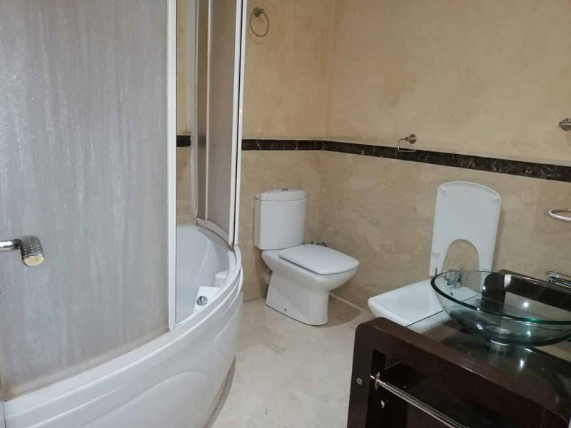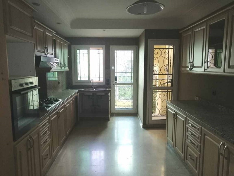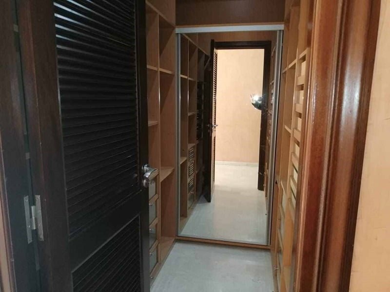 Immobilier au Maroc, location appartement sur Casablanca, quartier racine, pas loin du vélodrome, comprenant un grand salon avec coin cheminée, salle d’eau invités, cuisine entièrement équipée, suite parentale dont dressing et salle de bain avec jacuzzi, une deuxième suite avec placards et salle de bain avec douche, deux chambres avec placards, salle de bain avec baignoire, deux places au parking