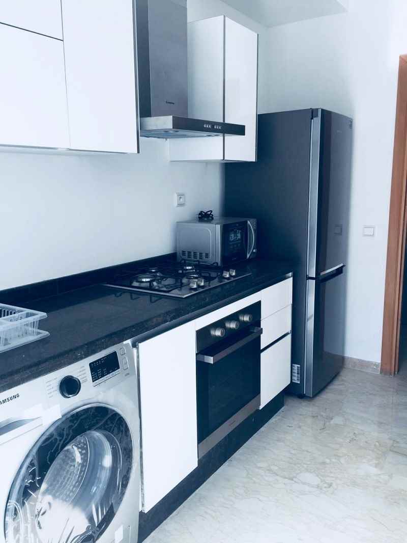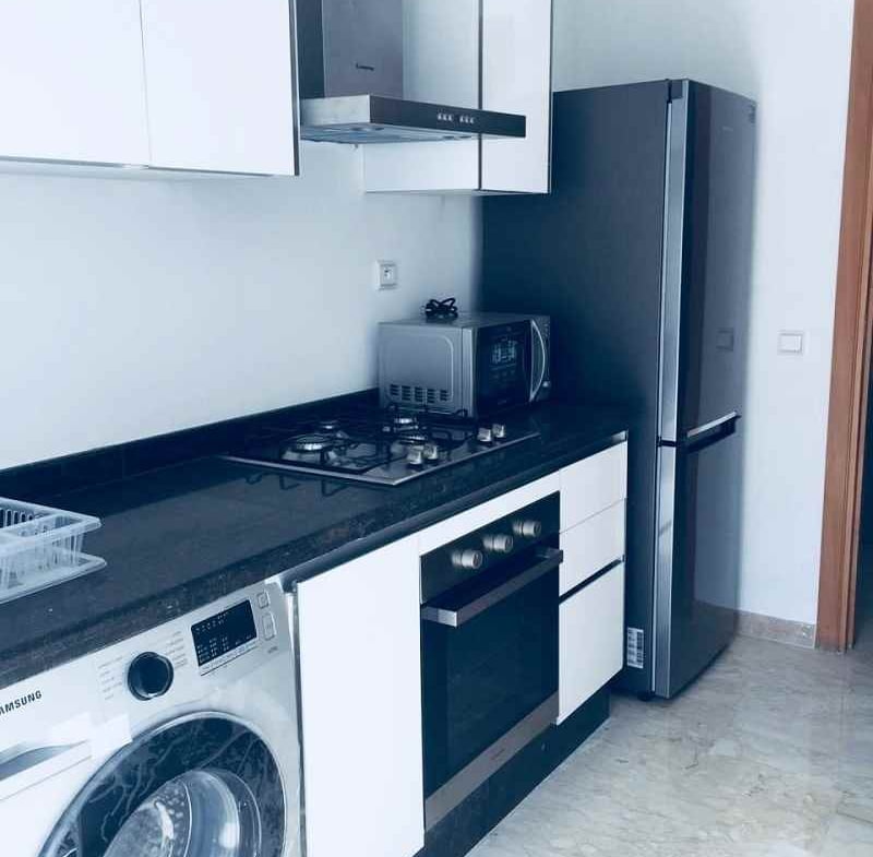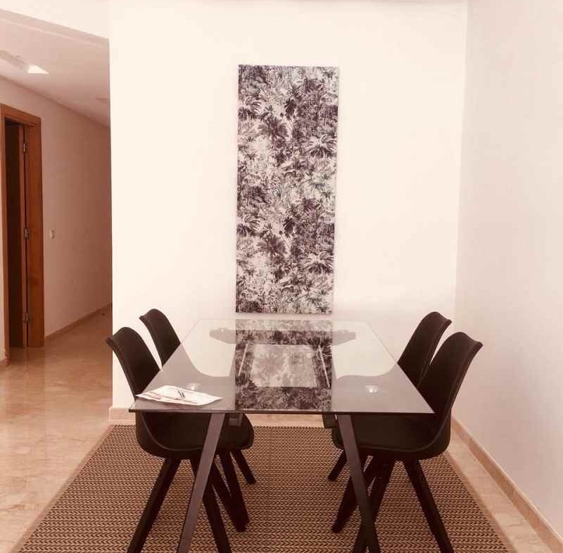 Immobilier au Maroc, location appartement sur Casablanca, d’une superficie de 75m² en étage élevé, meublé avec goût, sis sur quartier Gauthier, l’un des quartiers les plus demandés de Casablanca vu la proximité de toutes les commodités comprenant un beau salon européen avec coin salle à manger, cuisine équipée avec buanderie, une chambre avec placards, salle de bain avec douche, suite parentale dont placards et salle de bain, place au parking,
