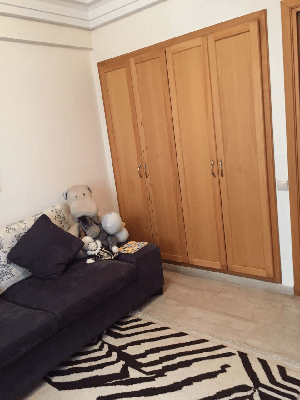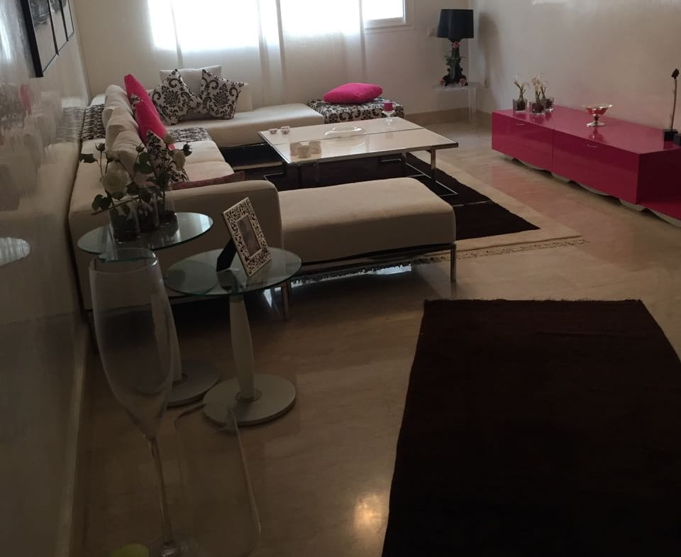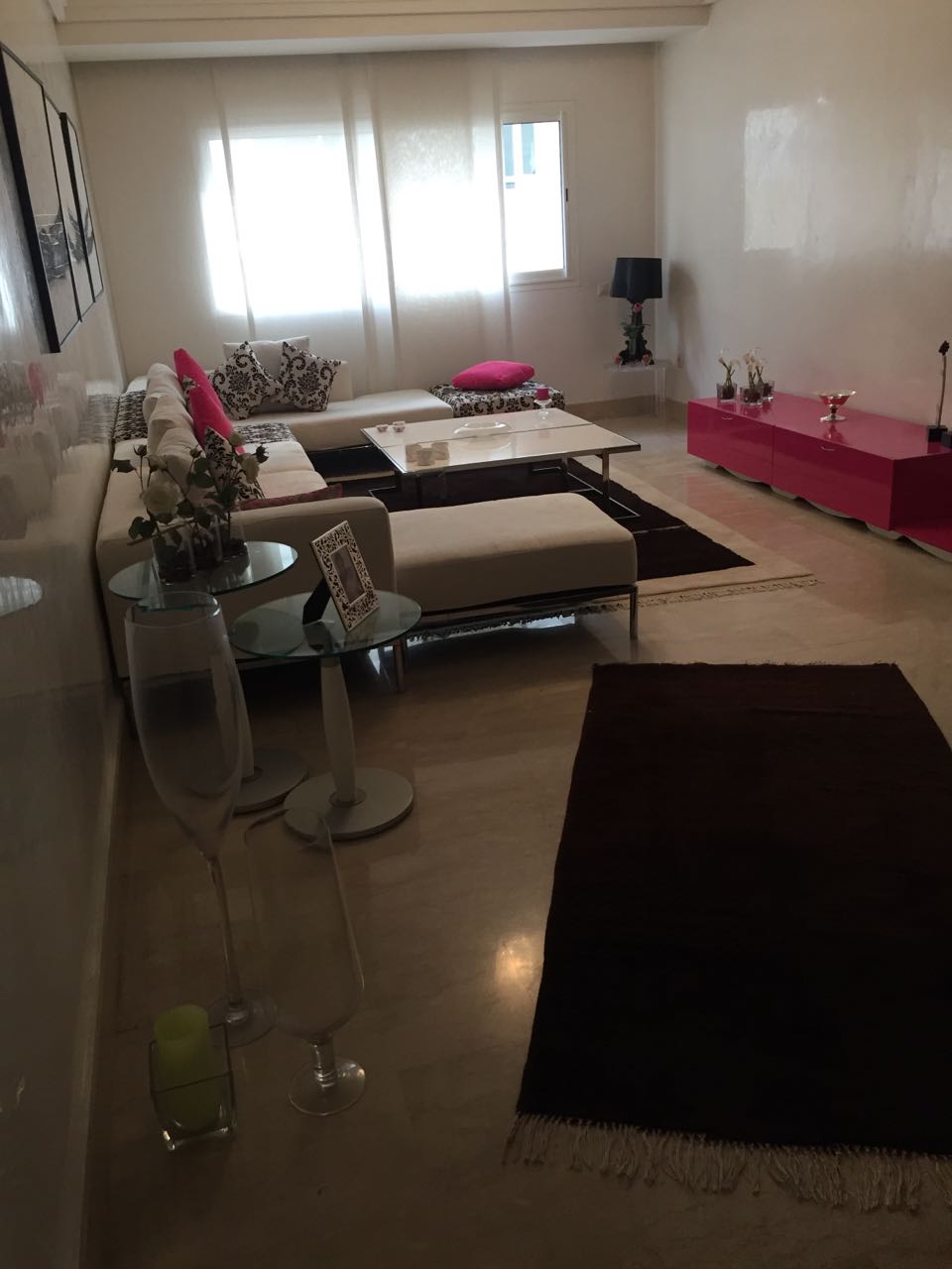 Immobilier Casablanca Maroc vous offre une Location-au-quartier-princesses-d’un-appartement-meublé d’une superficie de 82m² plus 4m² de balcon, situé sur l’un des quartiers Les plus demandés sur Casablanca, proche de toutes les commodités comprenant un grand double salon avec coin salle à manger, cuisine entièrement équipée avec chambre pour le personnel, suite parentale dont placards et salle de bain (baignoire), une autre chambre pour enfants avec placards ou séjour, une salle de bain avec cabine douche, et une place au parking