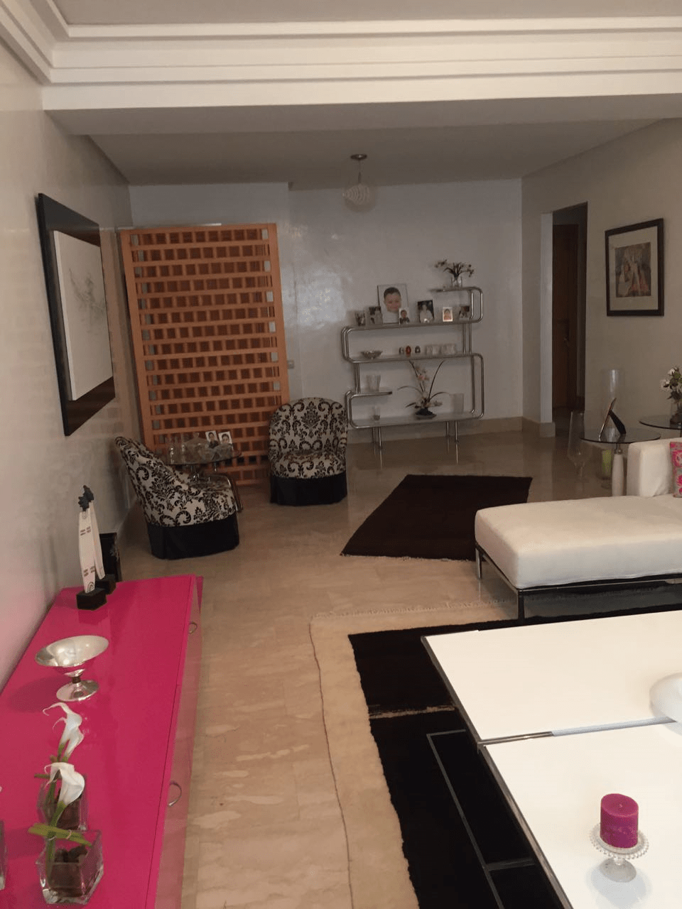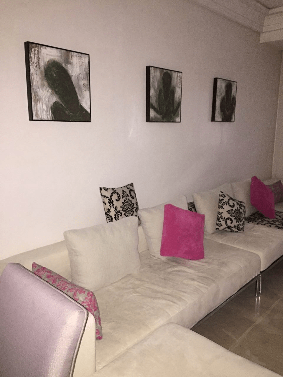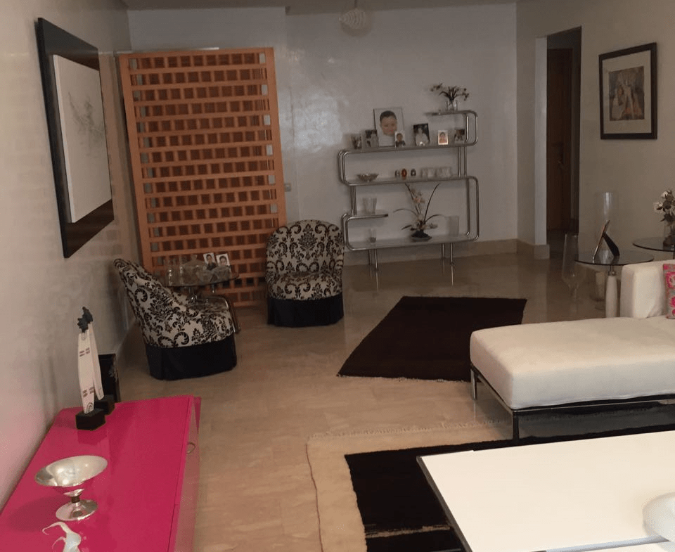 Immobilier Casablanca Maroc vous offre une Location-au-quartier-princesses-d’un-appartement-meublé d’une superficie de 82m² plus 4m² de balcon, situé sur l’un des quartiers Les plus demandés sur Casablanca, proche de toutes les commodités comprenant un grand double salon avec coin salle à manger, cuisine entièrement équipée avec chambre pour le personnel, suite parentale dont placards et salle de bain (baignoire), une autre chambre pour enfants avec placards ou séjour, une salle de bain avec cabine douche, et une place au parking