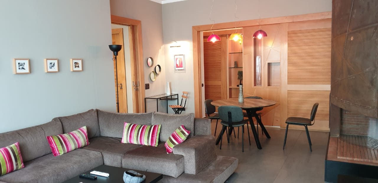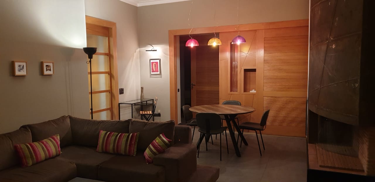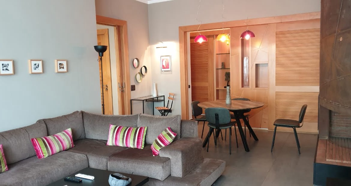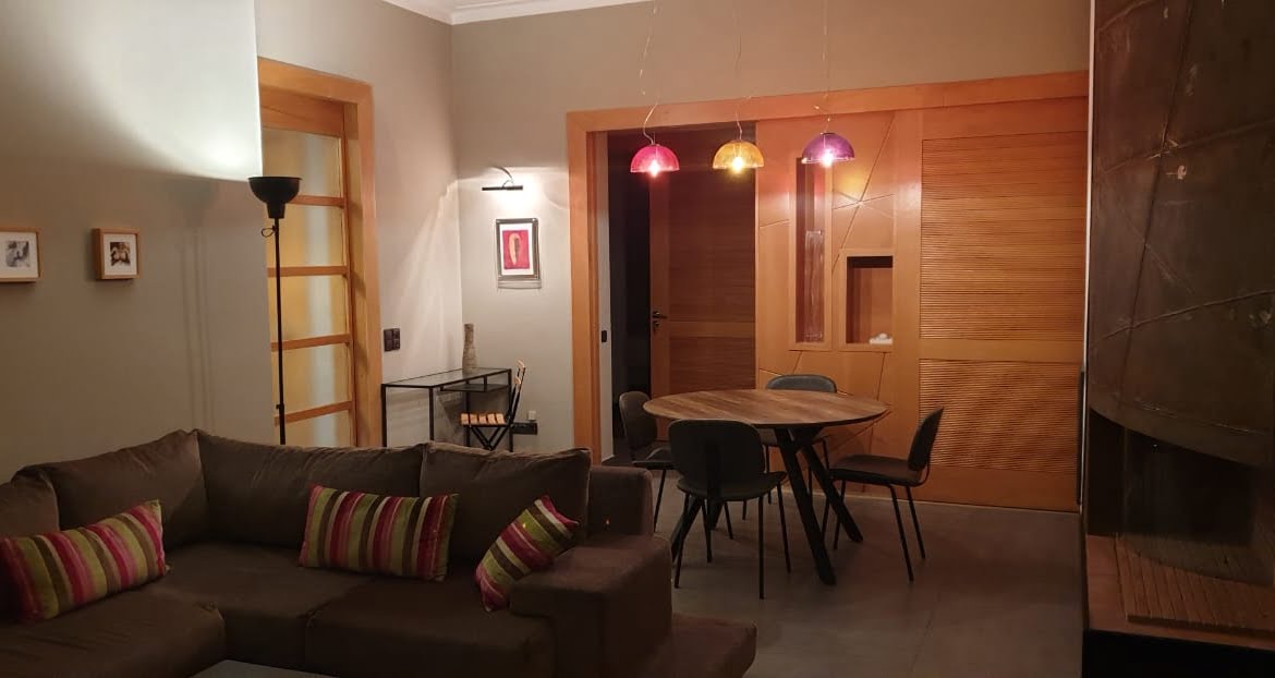 Location-Appartement-Meublé-Casablanca-sur-Bd d’Anfa, d’une superficie de 110m², se trouvant au deuxième étage, appartement totalement refait à neuf, comprenant un salon avec coin cheminée, espace salle à manger, cuisine entièrement équipée, chambre parentale dont placards et salle de bain avec douche à l’italienne, une autre chambre avec rangements, salle de bain avec cabine douche, place au parking