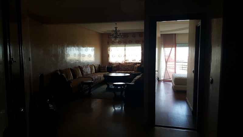 Location-Appartement-Meuble-Sur-Taddart d’une superficie de 120m², sans vis-à-vis, pas loin du Bd taddart, dans une residence sécurisé à la proximité de toutes les commodités composé d’un double salon, salle de bain avec cabine douche, une chambre avec placards, une deuxième chambre séjour, suite parentale dont placards et salle de bain avec baignoire, petite terrasse, cuisine entièrement équipé avec coin buanderie, et place au parking