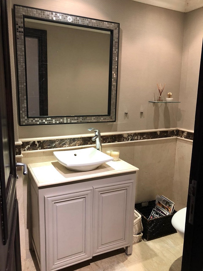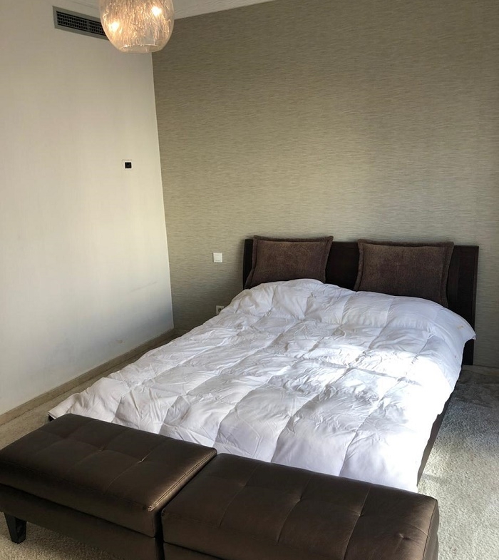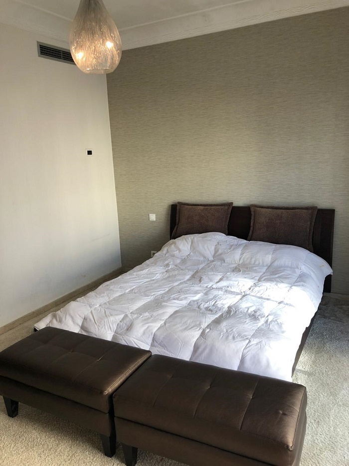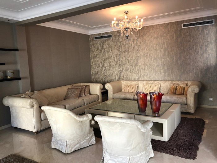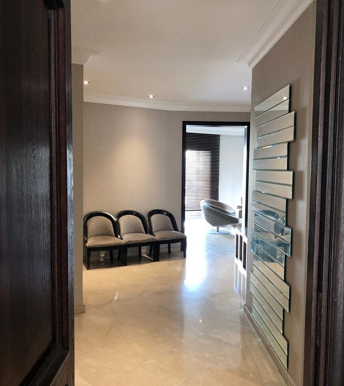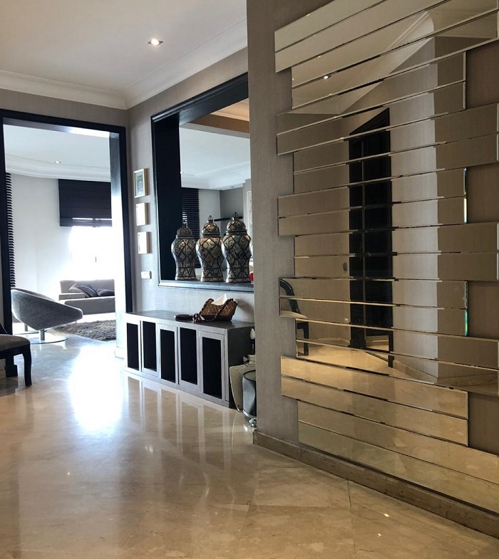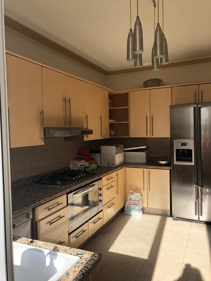Location-Appartement-Meublée-Racine Ext d’une superficie de 176m², appartement sans vis à vis et seul au palier, comprenant un double salon européen et marocain moderne, un séjour avec coin salle à manger, une salle d’eau invités, une cuisine entièrement équipée, une suite parentale avec grand lit dont salle de bain avec baignoire et dressing, deux chambres pour enfants avec placards, salle de bain avec baignoire, deux places au parking, et box