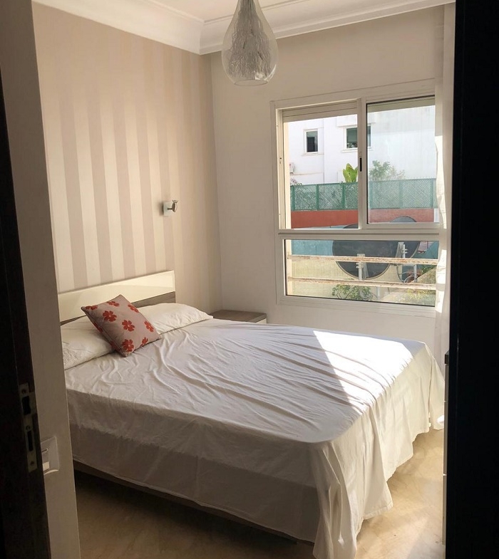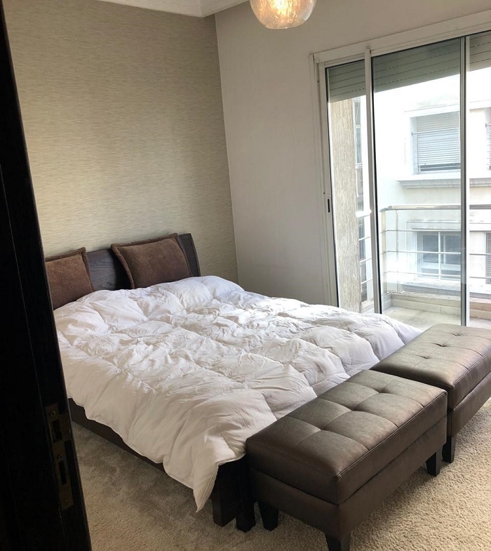 شقة للإيجار - شقة - مفروشة - امتداد راسين بمساحة 176 مترًا مربعًا ، شقة بدون رؤية ووحدها في الطابق الأرضي ، بما في ذلك غرفة معيشة مزدوجة أوروبية ومغربية حديثة ، وغرفة معيشة مع منطقة لتناول الطعام ، وحمام للضيوف ، ومطبخ مجهز بالكامل ، وجناح للوالدين مع سرير مزدوج بما في ذلك حمام مع حوض استحمام وغرفة ملابس ، وغرفتي نوم للأطفال مع خزائن ، وحمام مع حوض استحمام ، وموقفين للسيارات ، وصندوقRental-Apartment-Furnished-Racine Ext with an area of 176m², apartment not overlooked and alone on the landing, including a modern European and Moroccan double living room, living room with dining area, guest shower room, fully equipped kitchen , parental suite with double bed including bathroom with bathtub and dressing room, two children's bedrooms with cupboards, bathroom with bathtub, two parking spaces, and boxCompare listings