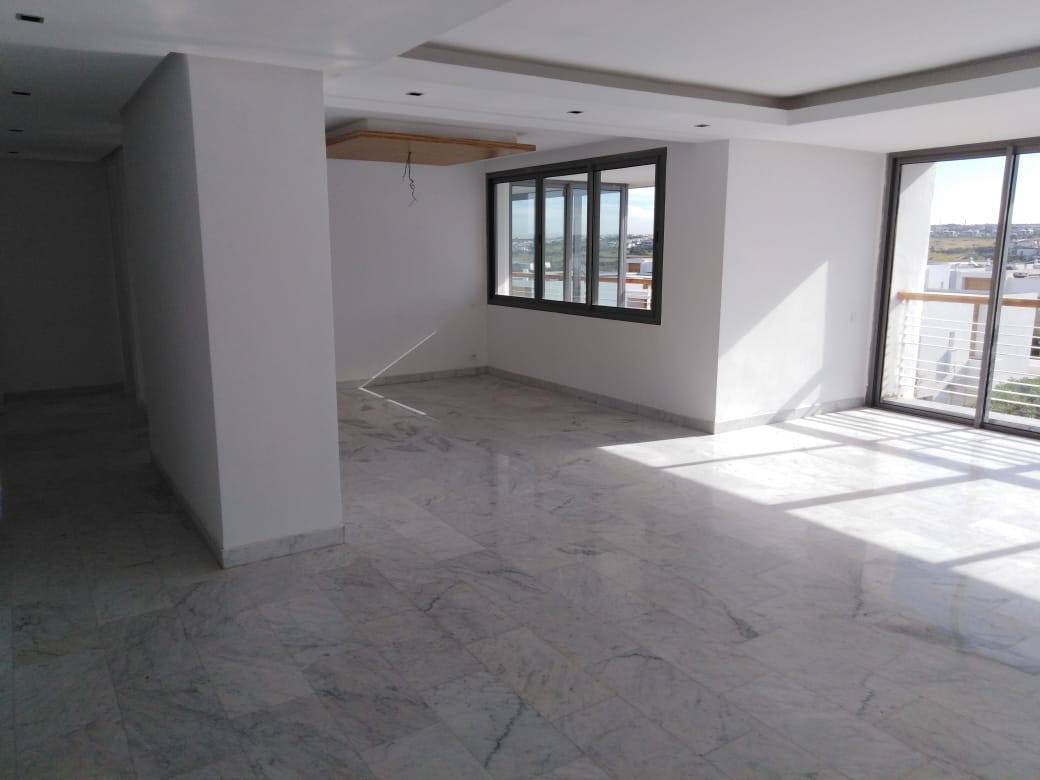 Location d’un magnifique appartement genre Penthhouse neuf sur Bouskoura ville verte d’une superficie de 185m², en première ligne avec vue très dégagée, dans une résidence de très haut standing , se trouvant au deuxième étage, comprenant un double salon avec des baies vitrées et coin cheminée, balcon avec vitres, salle d’eau invités, cuisine moderne et entièrement équipée, suite parentale dont dressing et salle de bain avec douche à l’Italienne, deux chambres à coucher avec placards, salle de bain avec cabine douche, chambre pour le personnel, place au parking,