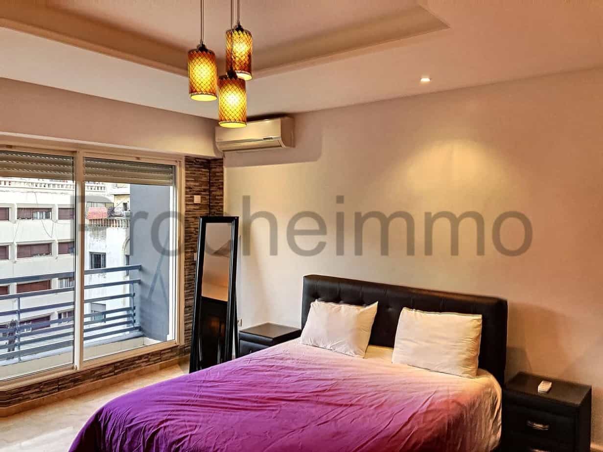 Location Studio-Loft-Meublé-pas-cher d’une superficie de 65m², entre Bd Anfa et Ziraoui, se trouvant au quatrième étage, sans vis à vis, dans une résidence récente avec ascenseur et place au parking, comprenant un lit double dans l’espace à coucher avec une séparation qui donne sur un beau salon européen, salle à manger et cuisine attenante entièrement équipée, salle de bain avec douche à l’italienne.