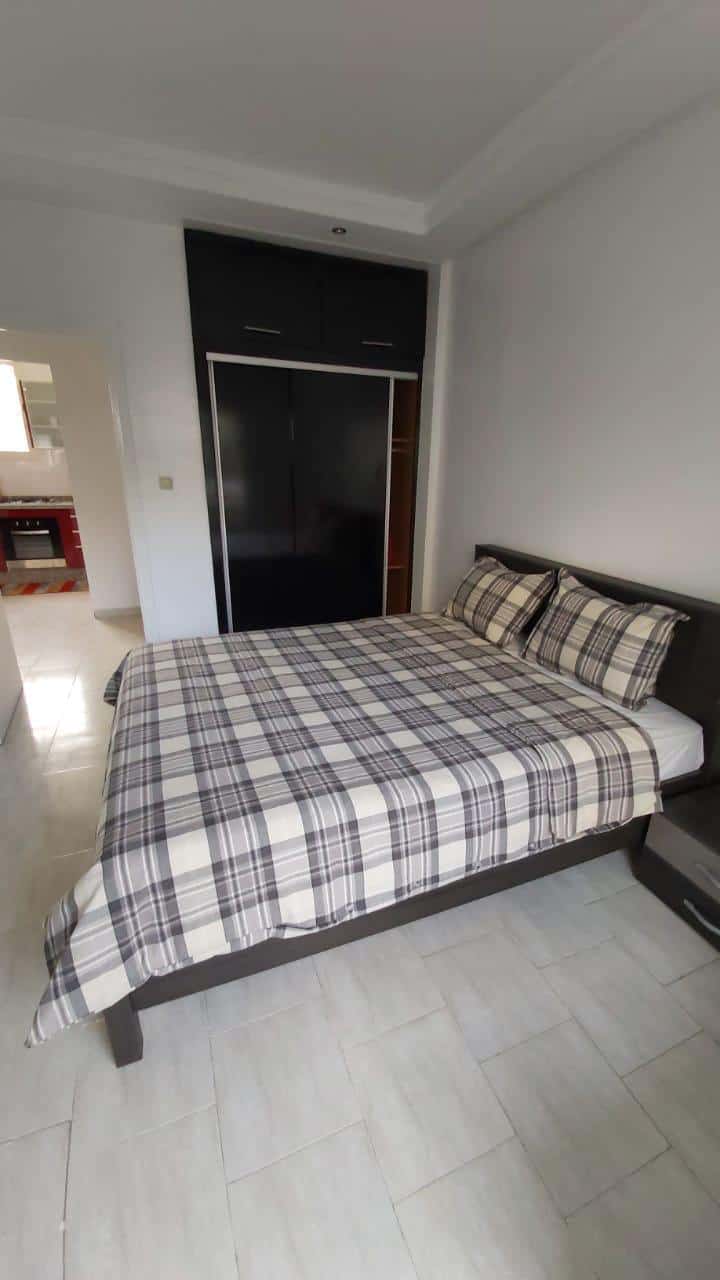 Location studio meublé-quartier-Gauthier, se trouvant au premier étage dans une résidence sécurisée comprenant un beau salon européen avec espace salle à manger, cuisine entièrement équipée, chambre avec placards et balcon donnant sur un jardin, salle de bain avec cabine douche