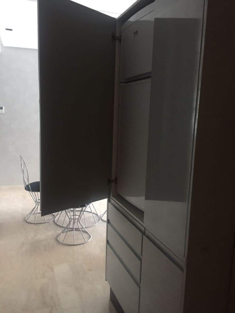 Location-studio-Meublé-terrasse-casablanca-Maârif de très haut standing, avec une belle terrasse situé plein centre , proche de toutes commodités, se trouvant au troisième étage, studio comprenant un salon avec grande baie vitrée donnant sur une terrasse avec cuisine entièrement équipée attenante, salle d’eau invités, suite parentale dont placards et salle de bain avec douche à l’italienne, place au parking