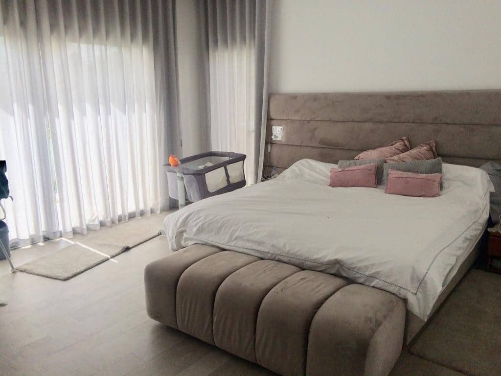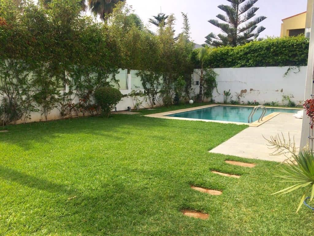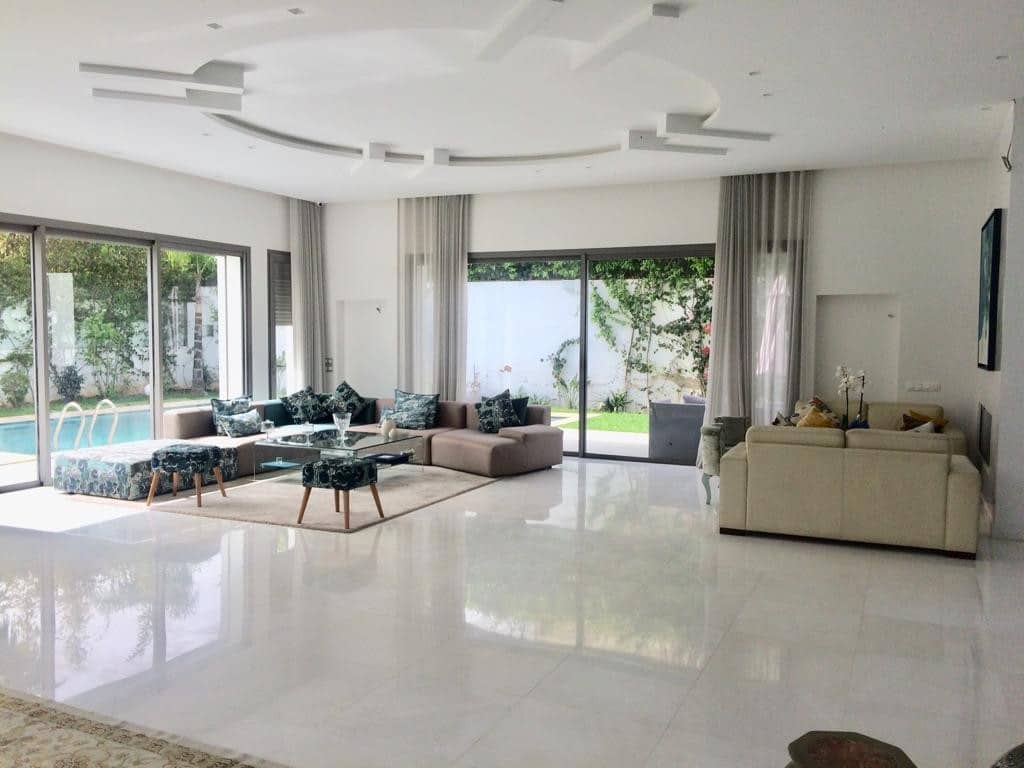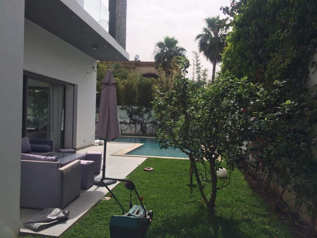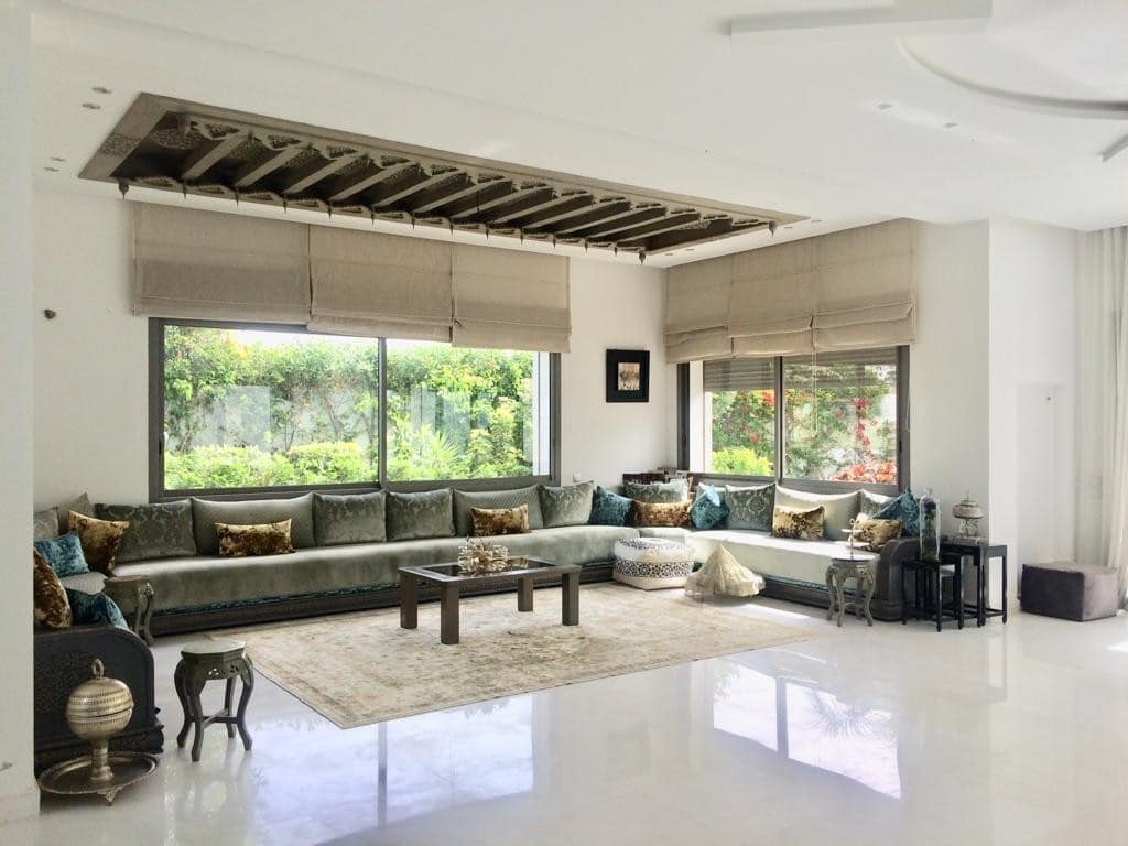 Rez de chaussée d’une superficie de 200m² comprenant double salon dont un living room et un salon marocain donnant sur un grand jardin arboré d’une magnifique piscine , une cuisine moderne entièrement équipée, un séjour, vestiaire invités, un garage pour plusieurs voitures, une chambre de gardien avec ses sanitaire
