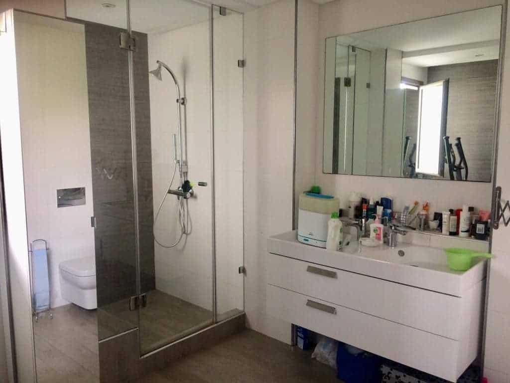 sous-sol de 112m² comprenant un double salon, chambre invité avec terrasse et salle de bain avec cabine douche, Chambre du personnel avec salle de bain douche, placard de rangement