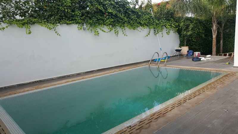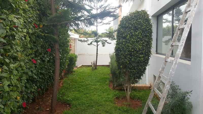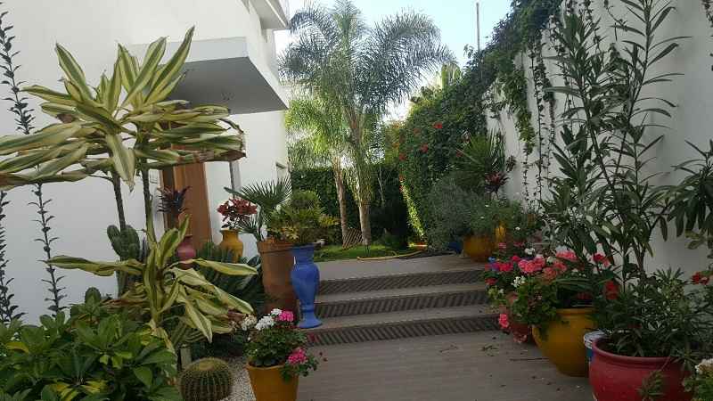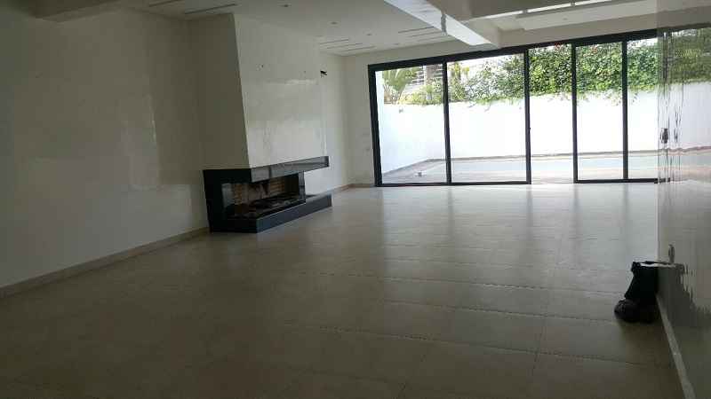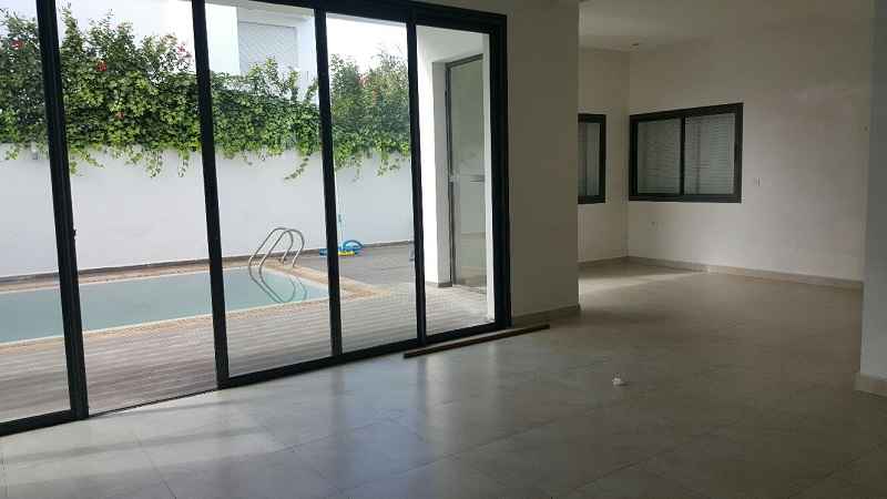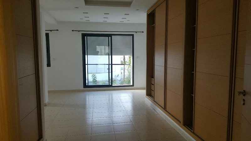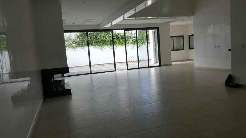 LOCATION-VILLA-CASABLANCA-MODERNE-SUR-AIN DIAB, l’un des quartiers de villas les plus demandés sur Casablanca d’une superficie de terrain 380m², construit 450m² sur trois niveaux, comprenant au RDC : un double salon avec coin cheminée et baie vitrée donnant sur le jardin et la piscine, séjour avec cuisine ouverte et moderne, une salle d’eau invités, Étage : deux grandes chambres avec dressing, salle de bain avec douche à l’italienne, une suite parentale dont dressing et salle de bain avec baignoire, Sous-sol : une chambre pour le personnel avec ses sanitaires, un séjour, grande cuisine équipé, chambre gardien garage pour deux voitures.