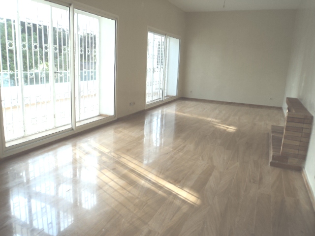LOCATION-VILLA-PLAIN-PIED-QUARTIER-AIN-DIAB d’une superficie de terrain de 1000m², construit 500m² sur deux niveaux, totalement refaite à neuve, composée d’un Sous-Sol: deux chambres commune avec salle de bain, deux chambres pour enfants avec placards, une salle de bain avec douche