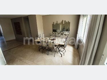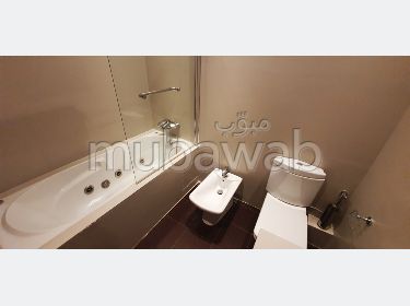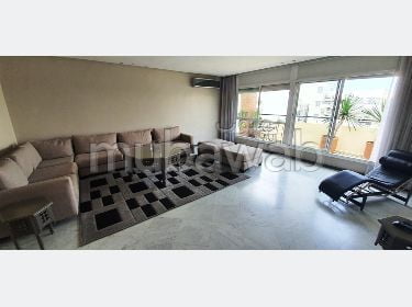 Maroc-immobilier-location-appartement-meublé-Casablanca, d’une superficie de 146m² dont 25m² de terrasse, sis sur quartier Racine, proche de toutes commodités, se trouvant au cinquième étage, appartement totalement rénové, comprenant un salon avec coin salle à manger le tous donnant sur une terrasse avec table et chaises, cuisine entièrement équipée, une chambre à coucher avec placards et salle de bain avec douche une suite parentale dont dressing et salle de bain avec baignoire, et place au parking